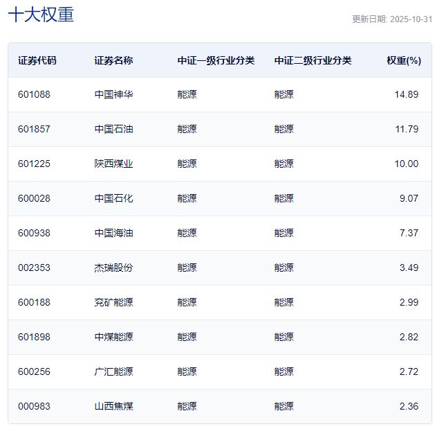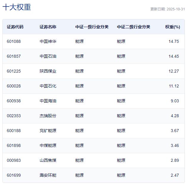 中证全指能源指数主要权重股 封面图片来源:每日经济新闻 |