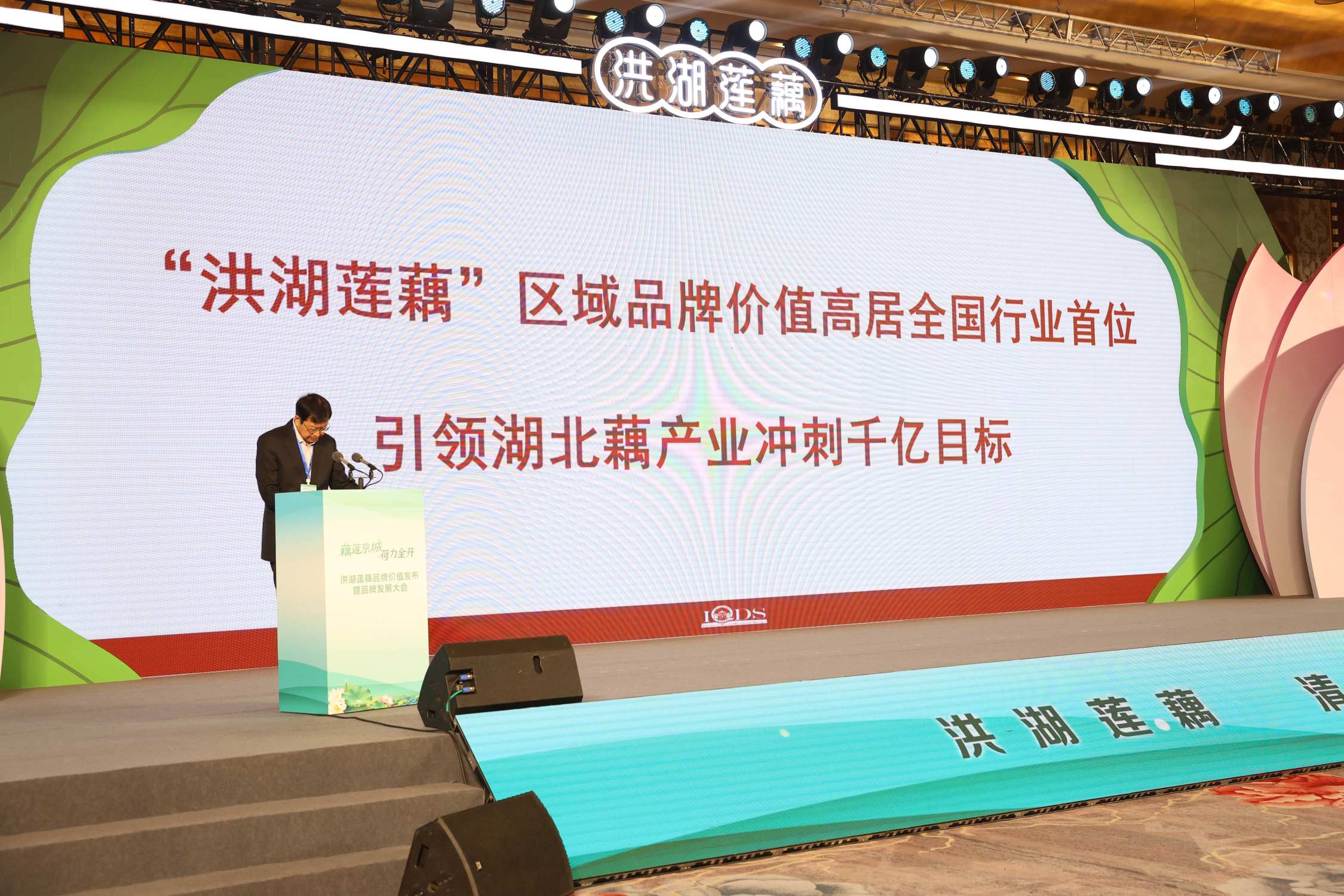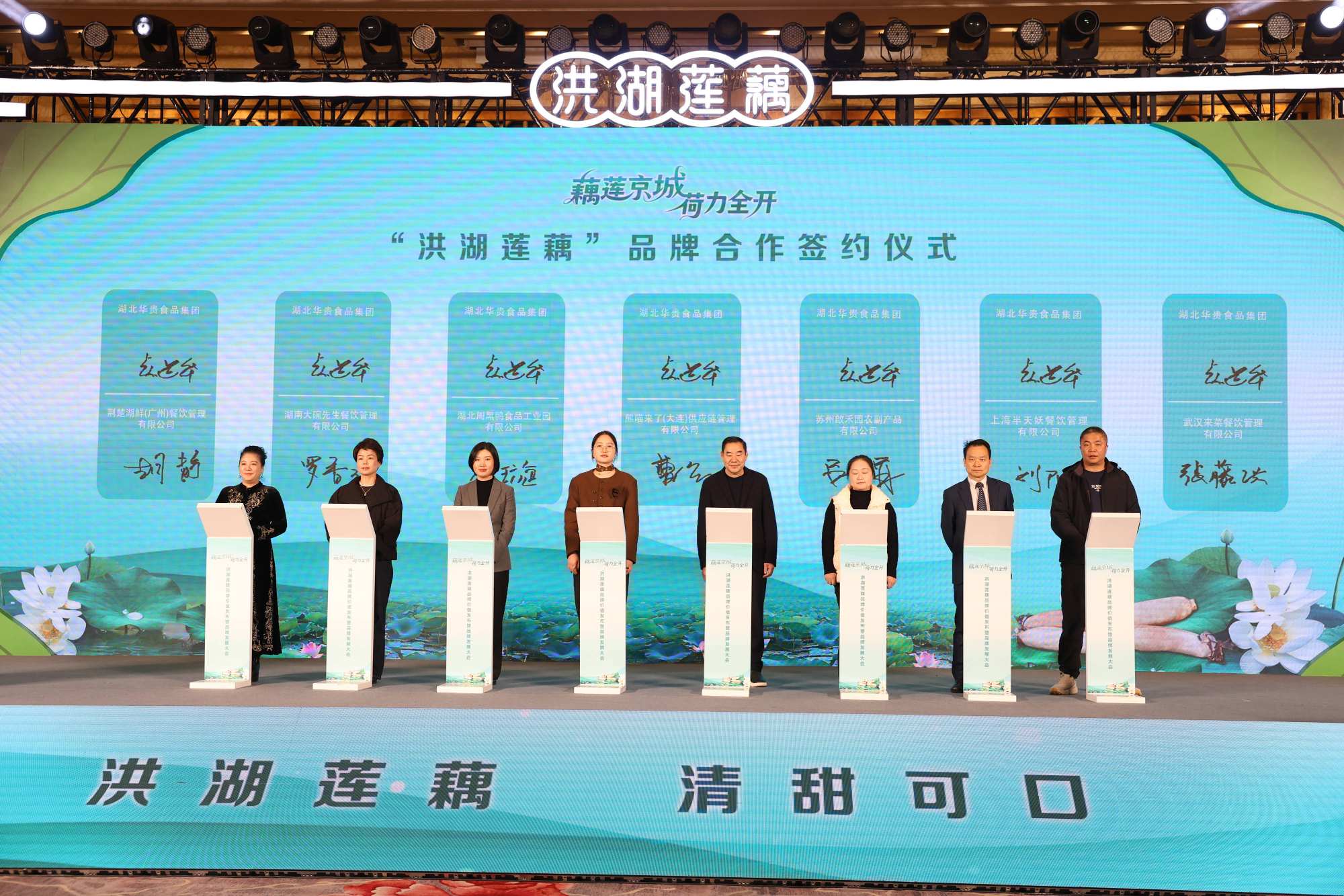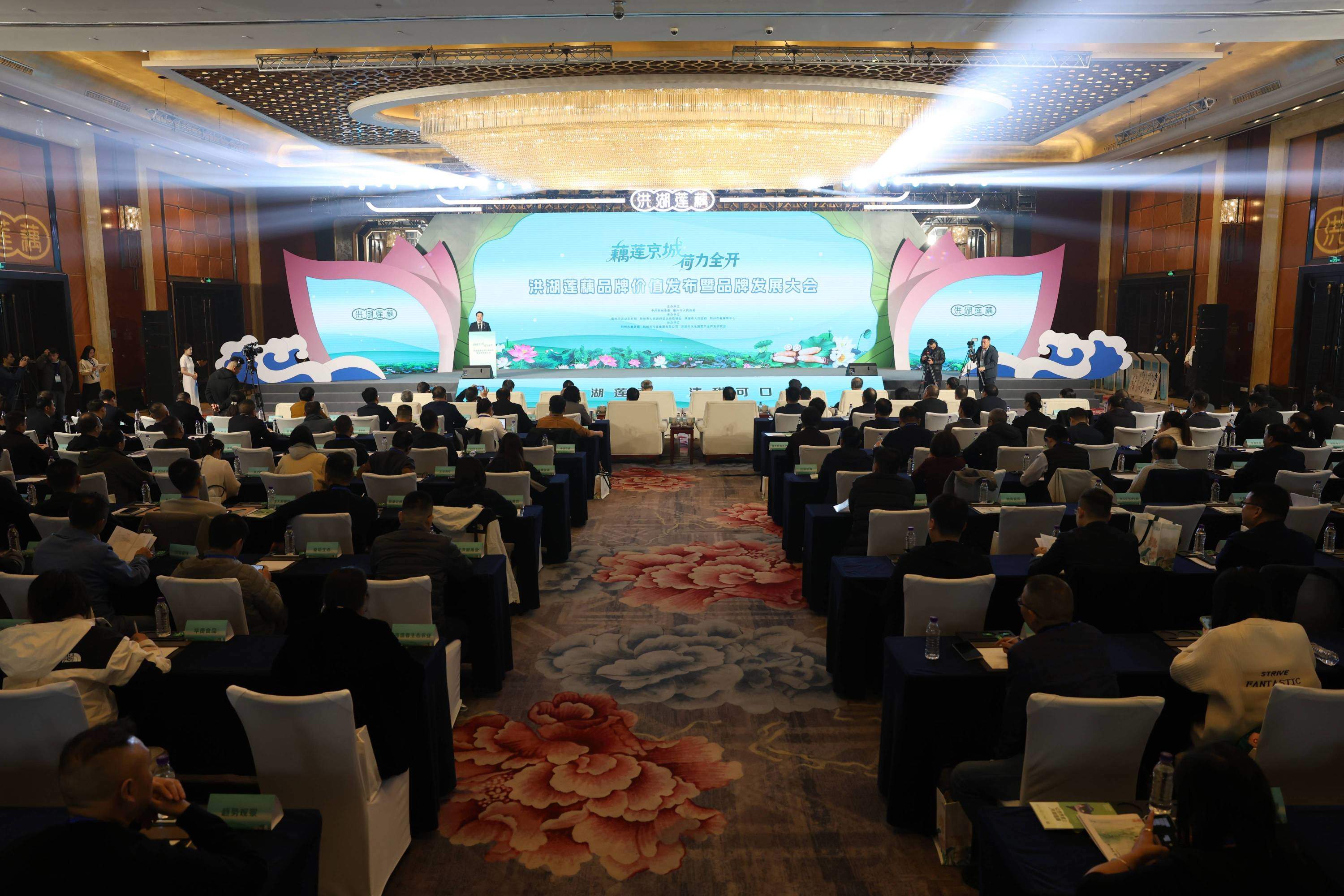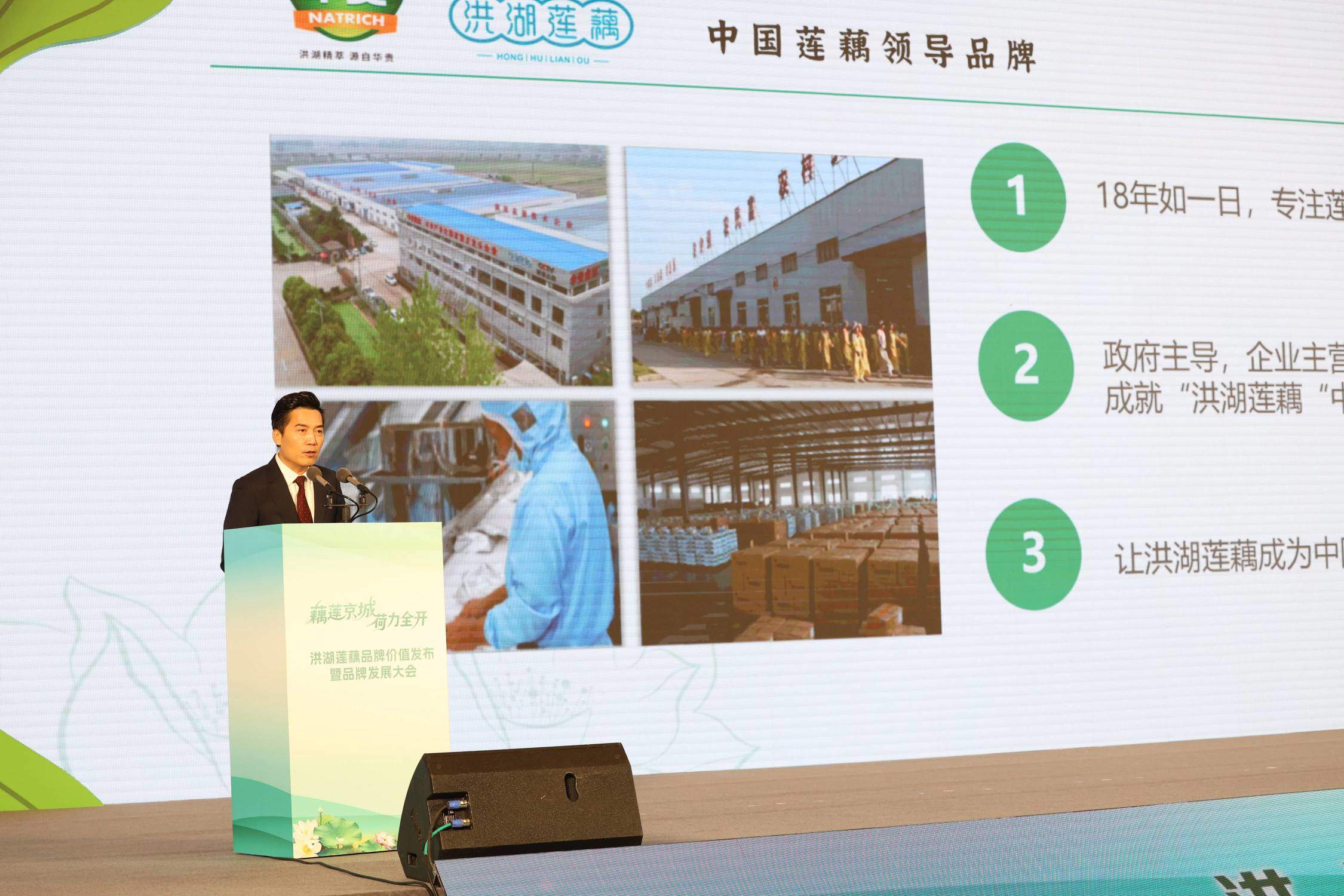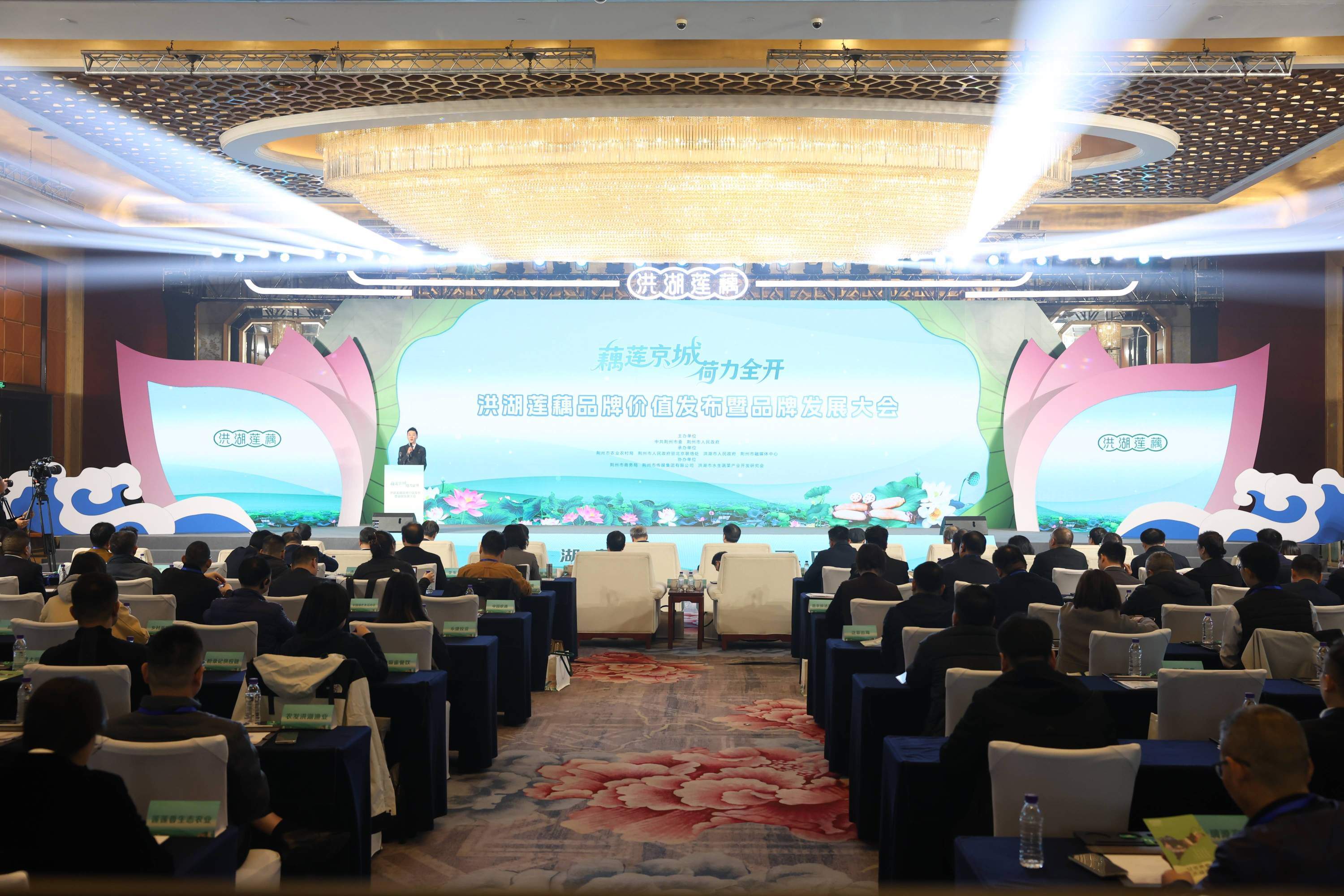 深秋的北京寒意初显,品牌发展大会现场却暖意融融,热闹非凡。 “洪湖水呀浪呀嘛浪打浪洪湖岸边是呀嘛是家乡”60多年前,一曲红色经典让洪湖的名字传遍大江南北。如今,洪湖莲藕从歌声中走来,一句“洪湖莲藕清甜可口”闻名全国,让这片土地的水生珍宝再度名扬天下。活动现场随着一曲悠扬婉转的《洪湖水浪打浪》拉开了“藕莲京城荷力全开”洪湖莲藕品牌价值发布暨品牌发展大会的帷幕。