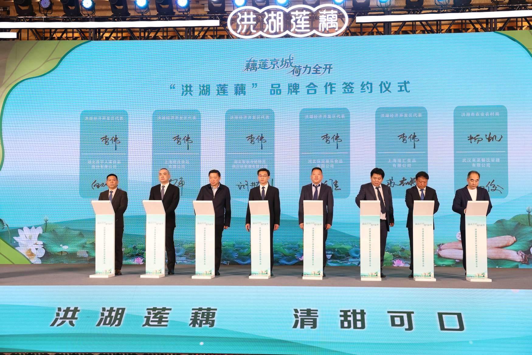 品牌发展背后,是产业融合结出的硕果。洪湖狠抓企业“招引、培育、壮大”三大工程打造洪湖莲藕特色产业集群,形成以 2 家国家级、4 家省级重点龙头企业为核心,46家规上莲藕加工企业协同发展的加工体系,年加工莲藕20万吨,年加工产值35亿元、占全省75亿元加工产值的46.7%。 企业分享环节展现了洪湖莲藕的产业活力。湖北华贵食品集团总经理杨福元细数发展历程:“我们从‘田边的工厂’起步,如今已成长为年加工鲜藕18万吨,年销售额突破20亿元的农业产业化国家重点龙头企业。由华贵集团牵头拟定的湖北泡藕带地方标准,更是填补了国内藕带无标准的空白。”他透露,公司将坚持绿色大发展,围绕“大健康”,持续推动产品创新、推动品种培优与农旅融合致力,打造洪湖莲藕全产业链,强化品牌影响力。 上海半天妖餐饮管理有限公司联合创始人刘阳贵则从市场端带来利好:“从藕片,到藕带,藕汤。展望未来,半天妖餐饮集团将在多品牌,多品种,跨国推广方面,与洪湖莲藕开展合作。”