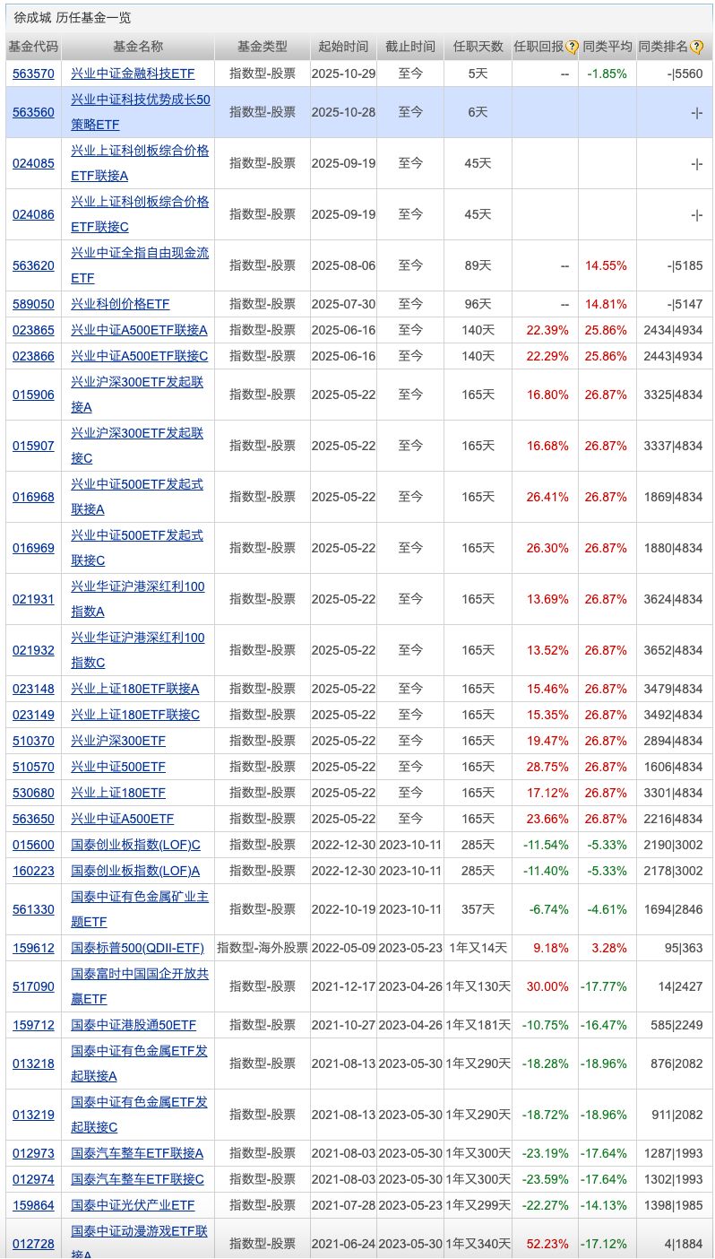 2、ETF主题机会 近期油价温和上涨,在地缘风险进入释放期,OPEC+持续退出减产的情况下,对俄制裁、库存和开采成本成为了当前油价的支柱,预计未来油价保持震荡趋势。煤炭方面,则因下游需求逐步释放,成交表现良好,贸易商挺价情绪浓厚,带动煤价持续上行。可关注能源ETF等产品。 四、明日重点关注新发基金1、基金简称:兴业中证科技优势成长50策略ETF 基金类型:股票型证券投资基金 基金经理:徐成城、张诗悦 业绩比较基准:中证科技优势成长50策略指数收益率 基金经理部分过往业绩: