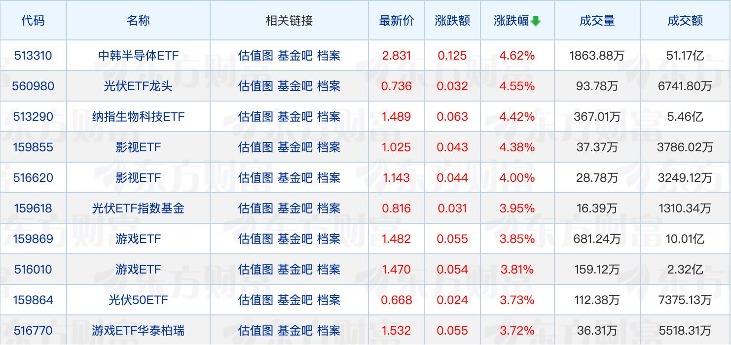 每经记者|肖芮冬 每经编辑|叶峰 天赐良基日报第758期一、今日基金新闻速览1、公募业绩比较基准改革细则出炉 10月31日,证监会发布《公开募集证券投资基金业绩比较基准指引(征求意见稿)》,中国证券投资基金业协会同步发布《公开募集证券投资基金业绩比较基准操作细则(征求意见稿)》,要求公募基金产品必须明确设定业绩比较基准,并对业绩比较基准的变更条件、投资风格监测、绩效考核、销售展示及托管人监督等作出系统性规范,剑指“基准随意设定、风格漂移”乱象。 2、泉果基金总经理王国斌病逝,董事长任莉代任职务 11月3日,泉果基金发布公告,总经理王国斌病逝,由董事长任莉代任总经理职务。履历显示,任莉现任泉果基金董事长,曾任东方证券股份有限公司资产管理业务总部副总经理,上海东方证券资产管理有限公司总经理助理、副总经理、联席总经理、董事、董事会秘书、总经理、公开募集基金管理业务负责人、财务负责人等职务。 3、公募新发市场头部效应明显 公募新发基金市场年内新成立基金数量已突破千只大关。值得关注的是,头部基金公司展现出强大的品牌和渠道优势,而不少中小型基金公司在发行市场则步履维艰。数据显示,有超过50家基金公司年内新发基金数量不足10只。有35家公司仅发行了1只至4只产品,总发行规模普遍在10亿元以下。 4、绩优基金C类份额规模飙升 今年三季度,多数绩优基金规模实现跃升。据统计,在三季度内涨幅超过80%的主动权益基金中,A类份额(如有分类)规模平均增长0.84亿份,而C类份额规模平均增长高达5.54亿份。 二、知名基金经理最新动态1、武阳管理的两只基金开放大额申购 近日,易方达基金发布公告,自11月3日起,取消易方达先锋成长混合(A类份额、C类份额)、易方达瑞享混合(I类份额、E类份额)单日单个基金账户在全部销售机构累计申购(含定期定额投资及转换转入)金额不超过100万元(含)的限制,恢复办理大额申购、大额转换转入业务。上述两只基金均由武阳管理。 三、今日ETF行情点评1、ETF行情复盘 市场探底回升,截至收盘,沪指涨0.55%,深成指涨0.19%,创业板指涨0.29%。沪深两市成交额2.11万亿元,较上一个交易日缩量2107亿元。板块方面,游戏、文化传媒、煤炭等板块涨幅居前,而小金属、电池、券商等板块回调居前。 具体来看,中韩半导体ETF领涨4.62%。光伏概念股表现活跃,阿特斯涨超12%,多只光伏相关ETF也有所表现。