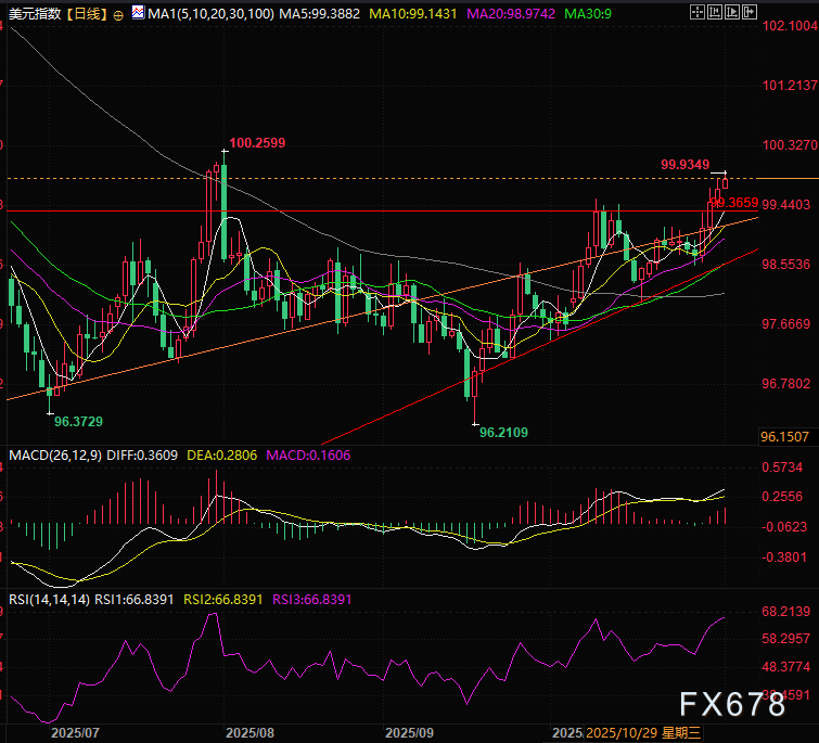 周一(11月3日)欧洲时段,美元指数继续走升,欧元区整体PMI处于荣枯线偏下位置压制了欧元汇价,美元指数已经几乎达成4连阳,其100点的牛熊线近在迟尺。 ![]() 美联储鹰派信号发力,12月降息预期显著降温 美联储在10月货币政策会议上如期宣布将基准利率下调25个基点,符合市场普遍预期,但美联储主席杰罗姆·鲍威尔的表态却超出市场预期。 他明确强调,当前通胀攀升、劳动力市场陷入停滞的双重背景下,货币政策制定面临多重挑战,同时警示市场不应对今年内进一步宽松抱有过高预期,直接压制了市场宽松押注。 这一鹰派信号仍在持续为美元提供动能支撑。据芝加哥商品交易所(CME)美联储观察工具数据显示,投资者对12月降息的押注概率已从会议前的91%大幅回落至67%,宽松预期降温进一步利好美元走势。 ![]() 美国经济数据成关键变量,制造业PMI与就业数据引关注 当前市场核心关注点集中在经济数据上,数据表现或成为美元短期走势的关键催化剂。 其中,周一市场聚焦美国10月制造业活动数据:市场预期标普全球制造业采购经理人指数(PMI)将呈现改善态势,10月读数预计从9月的52.0升至52.2,延续扩张区间; 而美国供应管理协会(ISM)制造业PMI则预计维持在收缩区间,从9月的49.1至49.5,仍处于荣枯线下方。 值得注意的是,ISM制造业PMI中的价格分项指数预计将从前期的61.9升至62.6,这一信号表明制造业领域通胀压力正边际上升,或进一步强化美联储鹰派立场的合理性。 此外,后续数据同样关键:目前尚不确定是否会公布JOLTS职位空缺数据,但周三发布的月度ADP就业报告被认为可能是本周美元下跌趋势重启的最大契机,市场将密切关注民间部门数据传递的信号。 机构信息:两大因素支撑美元,指数或震荡于高位区间 对于当前美元走势,荷兰国际集团(ING)外汇分析师克里斯·特纳指出,上周中美达成为期一年的贸易休战协议后,风险货币未出现预期中的提振,而美元仍是市场主导话题,核心源于两大支撑因素。 第一,市场正重新评估美联储宽松周期的幅度。目前12月降息25个基点的概率已降至66%,且可能根据本周美国数据进一步下降,民间部门数据的信号意义显著。 第二,美国货币市场紧张态势支撑美元买盘。 今年以来,美联储通过量化紧缩政策减少银行准备金,同时美国财政部将一般账户(TreasuryGeneralAccount)现金储备从3000亿美元增至9500亿美元,导致货币市场环境趋紧——上周五数据显示,银行从美联储常设回购工具(StandingRepoFacility)获取了500亿美元隔夜融资,且需支付4.00%的利率(理论上市场利率应处于美联储3.75%-4.00%政策利率区间中段)。 ING进一步预测,若美元融资难问题未延伸至国际市场跨境货币基差互换领域(目前尚无此类迹象),美元指数将在三个月区间高位附近,即100.00/100.25区间震荡,除非美国就业市场数据促使市场重新将12月美联储降息概率定价为100%。 总结+技术分析 美国银行间准备金比例处在历史低位,对美元短期存在明确支撑,但这只是货币现象,当美元指数到达100附近可能会出现逼空走势之后由于没有实质利好或导致快速调整,交易员需要警惕被轧空的风险,同时尽量避免追高。 美元指数突破上升楔形,量度涨幅在100.50附近。MACD、KDJ均显示美元指数涨势健康,未发现背离情况。 压力在前高100.25和100整数关口,支撑位在99.36附近,为8月1日非农公布阴线的50%分位处。 ![]() 北京时间20:32,美元指数现报99.85。 |