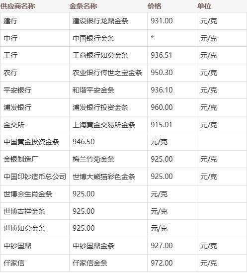 价格仅供参考,各地银行金条价格由于金价波动、活动、手续费等因素存在浮动,具体价格请前往当地银行网点或致电咨询!