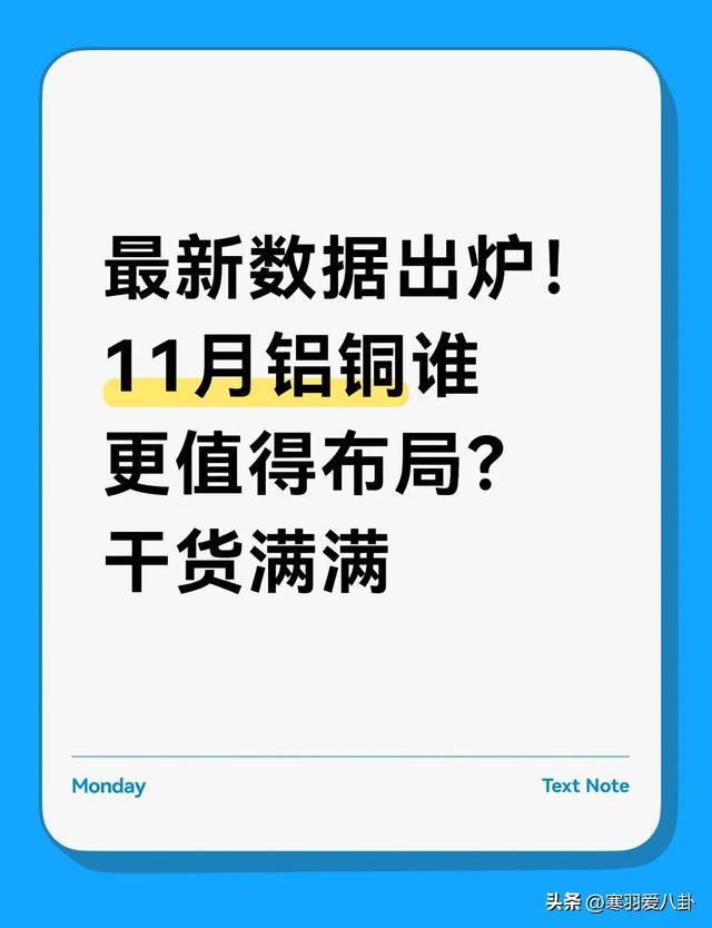 最新数据出炉!11月铝铜谁更值得布局?干货满满 11月刚开局,有色金属市场就分出了“强弱阵营”:11月3日沪铝主连报21475元/吨,仅微跌0.89%;而沪铜主连直接下探至466.5,单日跌幅达1.55%,相关个股也跟着承压。作为工业金属里的“顶流双子星”,铝和铜的走势直接牵动着投资者的钱包——11月到底该押注“轻量化先锋”铝,还是坚守“电力血管”铜? 其实不用猜来猜去,11月最新出炉的库存、供需、成本三组硬核数据,早就把答案说透了。今天咱用大白话拆解,不堆砌专业术语,全是能直接用的干货,看完就知道谁的行情更稳、布局机会更明确。 一、库存数据:铝“库存见底”托底,铜“累库压力”未减 库存就像金属市场的“蓄水池”,水位高低直接反映供需松紧,这一轮铝的优势肉眼可见。 先看铝的库存情况:11月2日最新数据显示,沪铝库存已经降到60.5万吨,较之前再降0.2万吨,妥妥的历史同期低位。这么说吧,市场上能流通的铝锭没多少存货了,相当于“蓄水池”快见底了。而且供给端还在收紧,国内电解铝产能快触到4500万吨的天花板,2025年全年净增才10万吨,海外像世纪铝业冰岛产能还在减产,供应根本松不下来。低库存+紧供给,意味着只要需求稍微回暖,铝价就容易往上走,这也是沪铝在20500元/吨附近支撑得特别稳的核心原因。 再看铜的库存:虽然10月下旬全球铜库存从72.05万吨小幅降到71.92万吨,但整体仍处于相对高位,而且美国地区库存偏多,累库压力并没有真正缓解。更关键的是,铜的库存结构有问题——看似小幅去库,实则是隐性库存显性化,市场上实际可流通的铜并没有想象中紧张。加上10月冶炼厂集中检修后,后续产能会逐步恢复,供应增加但需求没跟上,11月铜库存大概率还会承压,这直接给铜价上涨套上了“枷锁”。 结论:铝是“低库存+紧供给”双重托底,下跌空间有限;铜是“高库存+潜在供给增加”,短期上涨动力不足。 二、供需格局:铝“多点开花”抗跌,铜“依赖单一”承压 如果说库存是短期支撑,那供需格局就是决定长期走势的核心,这方面铝的抗风险能力远胜铜。 先聊铝的需求,现在早就不是“铝=门窗+易拉罐”的时代了,它的需求已经扩散到新能源、光伏、AI等多个高景气赛道,堪称“多点开花”。在新能源汽车领域,2025年新能源车渗透率都快40%了,单车用铝量从之前的0.5kg涨到1.5kg,电池连接器、车身框架都得用铝,11月车市进入年末冲刺,加上“以旧换新”政策延续,汽车用铝需求肯定要冲一波。 光伏领域更不用说,国内光伏装机量持续高增,支架、边框全是铝制品,而且海外新兴经济体工业化加速,对光伏产品的需求也在涨,间接带动铝的出口。还有AI数据中心,现在单机柜功耗从3-7kW飙到25kW以上,配电系统里的铝母线槽又便宜又散热好,成了刚需,全球AI服务器出货量激增,铝的高端需求一直放量。更重要的是,这些需求来自不同赛道,就算一个行业疲软,其他行业也能撑着,抗跌性特别强。 再看铜的需求,它号称“电力血管”,70%的需求都绑在电力和建筑业上,简直是“单腿走路”。虽然1-10月国内电网投资同比涨了20.7%,新能源汽车、充电桩用铜量也在增加(新能源车用铜是传统车的4倍),但架不住建筑业不给力。10月房地产销售数据依旧疲软,水泥、钢材需求同比跌了11%-18%,建筑用铜需求跟着同比减少6%,而这部分需求占比太高,新兴领域的增量根本抵消不了。 供给端方面,铜也有隐忧:虽然矿端紧张,像印尼Grasberg铜矿停产、巴拿马矿山关停,导致TC/RC创历史新低,但冶炼端检修结束后,精铜产量会逐步恢复,而且淡水河谷预计2025年铜成本会降到1000-1500美元/吨,成本下降可能会刺激部分产能释放,进一步缓解供应紧张。而铝的供给刚性更强,国内产能天花板明确,铝土矿还面临几内亚供应不稳的问题,2024年铝土矿缺口就达485万吨,供给紧平衡的格局很难改变。 结论:铝的需求结构分散、供给刚性强,抗跌又有增量;铜依赖建筑业,需求短板难补,供需格局不如铝稳健。 三、成本支撑:铝“成本企稳”盈利稳,铜“成本下行”难抵需求疲软 成本是金属价格的“底线”,也是企业盈利的关键,这一轮铝的成本支撑比铜更靠谱。 先看铝的成本构成:生产铝主要靠氧化铝和电力,10月氧化铝现货价格已经降到3098元/吨,环比跌了5.1%,而且目前氧化铝供应偏宽松,厂家减产意愿不强,库存还在创新高,后续价格很难大幅上涨,甚至可能继续低位运行。虽然电力成本有波动,但氧化铝价格下跌带来的成本节省,足以抵消电力的小幅上涨,11月电解铝冶炼成本大概率会企稳甚至小幅下降,行业盈利空间能保持稳定。 还有再生铝这边,现在废铝供应偏紧,铝价偏强的情况下,废铝价格易涨难跌,再生铝合金的成本底部支撑很牢固,11月铸造铝合金价格大概会在19000-21500元/吨区间波动,不会出现大幅跳水。成本稳,铝价就有了“安全垫”,就算市场情绪波动,也难跌破关键支撑位。 再看铜的成本:虽然淡水河谷预计2025年铜成本会降到1000-1500美元/吨,比之前预期的低,但这是把双刃剑——成本下降确实能缓解企业盈利压力,但也可能让部分之前亏损的产能重新开工,增加市场供应压力。更关键的是,铜价现在受需求疲软影响,就算成本下降,也很难带动价格上涨,反而可能因为供应增加导致供需失衡,进一步压制铜价。而且铜矿品位下滑、开采难度加大的长期问题还在,成本下降的空间其实有限,很难给铜价提供实