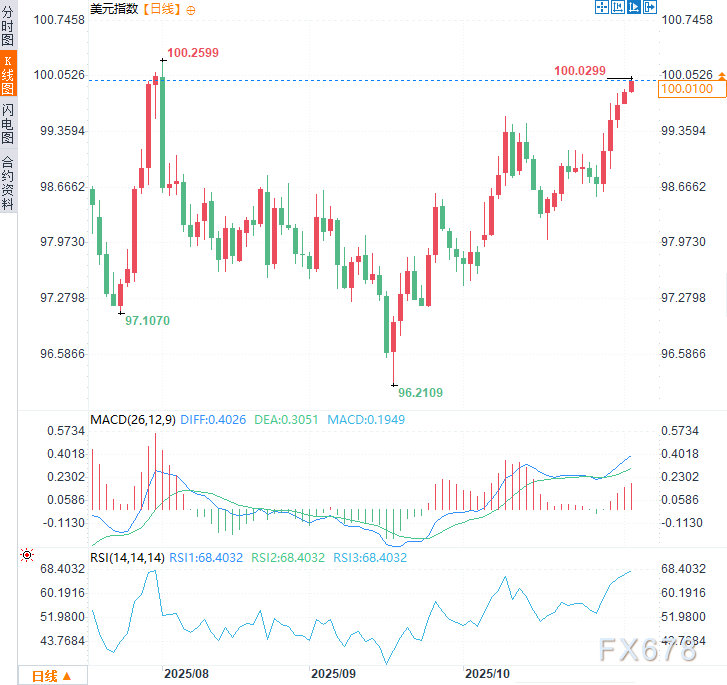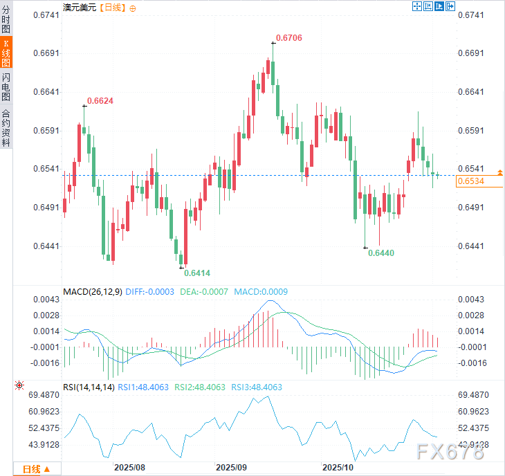 美元指数周二(11月4日)连续第五个交易日走强,涨幅约0.15%,一度达到100.03的近三个月高点,若此处动能转弱,可能标志ABC平势调整的C浪开启。但目前该关口仍是多空双方激战争夺的关键点位。澳元兑美元延续前四个交易日跌势,跌幅约0.08%。 ![]() 美元指数技术分析 考虑到本周美国将公布关键经济数据,此时需保持谨慎——这意味着美元指数本周可能出现波动。 周线与日线RSI(14)指标均确认当前上涨趋势完好,且均未进入超买区间,因此美元指数在完成C浪调整前,仍有可能上探101关口。 但若本周数据表现疲软,市场可能迅速重估美联储降息预期,从而拖累美元走低。 风险并未消退。美国政府停摆已进入第六周,即将成为历史上最长的停摆纪录,共和党与民主党在预算谈判中依旧僵持不下。投资者担心,这一政治僵局可能削弱美国经济活动,从而削弱美元支撑。这可能为澳元提供支撑——尤其若澳洲联储在维持利率不变的同时释放鹰派信号。 ![]() 澳元兑美元技术分析:收益率利差与期权头寸暗示澳元下行空间有限 澳大利亚国债收益率与期权市场头寸的相关性显示,澳元回调幅度可能受限。2年期澳债收益率持续上行,且澳美2年期利差已领先澳元汇率显著走阔。 尽管澳元兑美元1日期权隐含波动率一度升至三日高位,但1周与1个月期限的隐含波动率仍处于温和水平。此外,风险逆转指标表明看涨期权需求(做多头寸)相对看跌期权(做空头寸)持续保持稳健。 澳元兑美元日线现黄包车十字星,暗示下行动能减弱 澳元虽连续四日收跌,但黄包车十字星形态表明看跌动能正在衰退。周一低点(0.6517)守在9月低点(0.6483)上方,凸显出初步支撑已现。鉴于澳洲联储可能实施鹰派按兵不动,澳元兑美元或将迎来短期反弹,同时美元会展开小幅回调。 不过,基于对美元在C浪完成前仍将走强的大局判断,澳元任何修复行情在初步反弹后或将受限。 ![]() 北京时间9:37,澳元兑美元交投于0.6531/32。 |