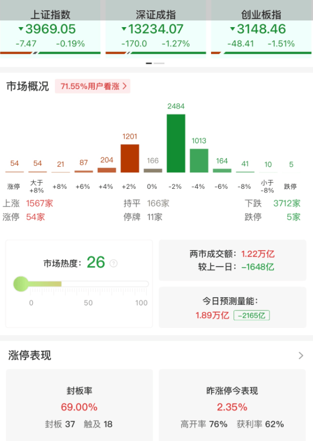格隆汇11月4日|A股三大指数早盘集体下跌,截至午间收盘,沪指跌0.19%报3969.05点,深成指跌1.27%,创业板指跌1.51%,北证50跌2.3%。沪深京三市半日成交额12311亿元,较上日缩量1674亿元,全市场超3600只个股下跌。盘面上,福建本地股大面积涨停,中能电气(300062)、招标股份20CM涨停,漳州发展(000753)、达华智能(002512)、平潭发展(000592)等多股10cm涨停;银行、旅游板块走强。另外,能源金属、黄金、人形机器人板块跌幅居前。