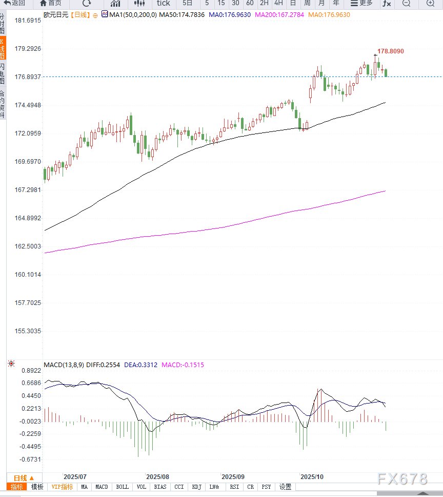 欧元兑日元(EUR/JPY)周二亚洲交易时段继续承压,汇价交投于177.20附近。随着市场对日本央行(BoJ)未来政策预期升温,日元获得支撑,成为本轮走势的主要驱动力。 ![]() 尽管日元获得支撑,但欧元方面的政策预期也在为汇价提供部分缓冲。欧洲央行(ECB)上周举行的10月会议上,连续第三次维持利率不变,并表示通胀前景总体稳定、经济仍保持增长、但外部不确定性依旧存在。 这一决策符合市场预期,也显示央行倾向于暂缓进一步行动。 最新数据显示,欧元区通胀率已降至略高于2%的目标水平,第三季度GDP增速超出市场预期,而10月商业调查结果显示企业信心有所回升。 法国央行行长维勒鲁瓦(Francois Villeroy de Galhau)在会后表示,欧洲央行目前处于“较为理想的位置”,但政策并非“固定不变”。 拉脱维亚央行行长卡扎克斯(Martins Kazaks)亦指出,欧元区通胀与增长风险趋于平衡,央行应“谨慎行动,避免过度反应”。 技术面来看,欧元兑日元自上周高点179.00附近回落,已跌破短期支撑位177.50,14日相对强弱指数(RSI)下滑至45,表明短线偏弱格局仍在延续。 若汇价进一步下破177.00关口,可能触发加速下探176.30及175.80区域;反之,若重返178.00上方,则有望重启反弹,目标看向178.70及179.20。 ![]() 从宏观层面看,欧元兑日元的走势正在受到政策预期差异的主导。日本央行的鹰派暗示在短期内提升了日元吸引力,但财政扩张计划又可能削弱紧缩前景,形成政策“拉扯”。 而欧洲央行则维持观望态度,使欧元缺乏明确方向。整体来看,EUR/JPY短期或维持区间震荡,但若日本央行在12月发出更明确加息信号,汇价可能进一步跌向175关口。  |