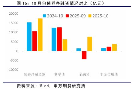 4、热点问题 央行恢复国债买卖操作 10月27日,在2025金融街论坛年会开幕式上,人民银行行长表示:今年初,考虑到债券市场供求不平衡压力较大、市场风险有所累积,人民银行暂停了国债买卖。目前,债市整体运行良好,人民银行将恢复公开市场国债买卖操作。 公开市场国债买卖操作是指央行在二级金融市场上买入或卖出国债,以此来调节市场流动性和引导利率的一项常规流动性管理工具,是货币政策工具,不是为了财政赤字融资。主要目的是为调节市场流动性,引导和稳定市场利率,完善国债收益率曲线。 2024年8月,央行正式在公开市场开展国债买卖操作,当月净买入债券面值为1000亿元,随后9-11月,央行净买入债券2000亿元,12月净买入3000亿元,加大货币政策逆周期调节力度。不过由于当时政府债券市场持续供不应求,央行决定自2025年1月起暂停开展公开市场国债买入操作。 央行此次恢复公开市场国债买卖操作,首先,对于债券市场来说,央行作为“超级买家”入场,直接增加了国债的市场需求,稳定债市预期,从债券现货市场来看,10年期国债活跃券收益率下行达到5bp。 其次,对于市场流动性来说,央行在二级市场买入国债,相当于直接向银行体系投放基础货币,这种投放属于中长期流动性,效果比短期的逆回购操作更持久,有助于降低实体经济的综合融资成本。2014年以前,贸易顺差导致外汇占款大幅增长央行被动投放基础货币,2014 年之后外汇占款下降,2016年之后趋于稳定,由PSL/MLF等工具替代,主动投放基础货币,未来国债买卖操作有望成为新的基础货币投放工具。 再次,该操作是货币政策和财政政策协同配合的重要纽带,如果短期政府债券发行量较大,央行可以通过购债操作平滑政府债券发行对市场的冲击,保障宽财政政策顺利实施。 此外,央行行长还表示,将继续坚持支持性的货币政策立场,实施好适度宽松的货币政策,综合运用多种货币政策工具,提供短期、中期、长期流动性安排,保持社会融资条件相对宽松。