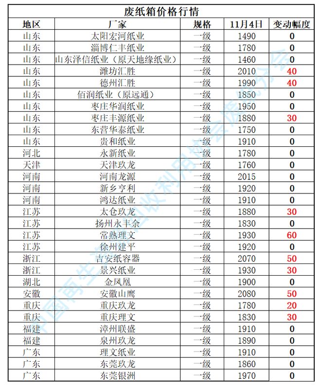 废纸日报 今日中国再生资源废纸价格指数为1908元/吨,与上一个工作日相比上调14元/吨。望当地废纸商家密切关注价格走势,谨慎操作!