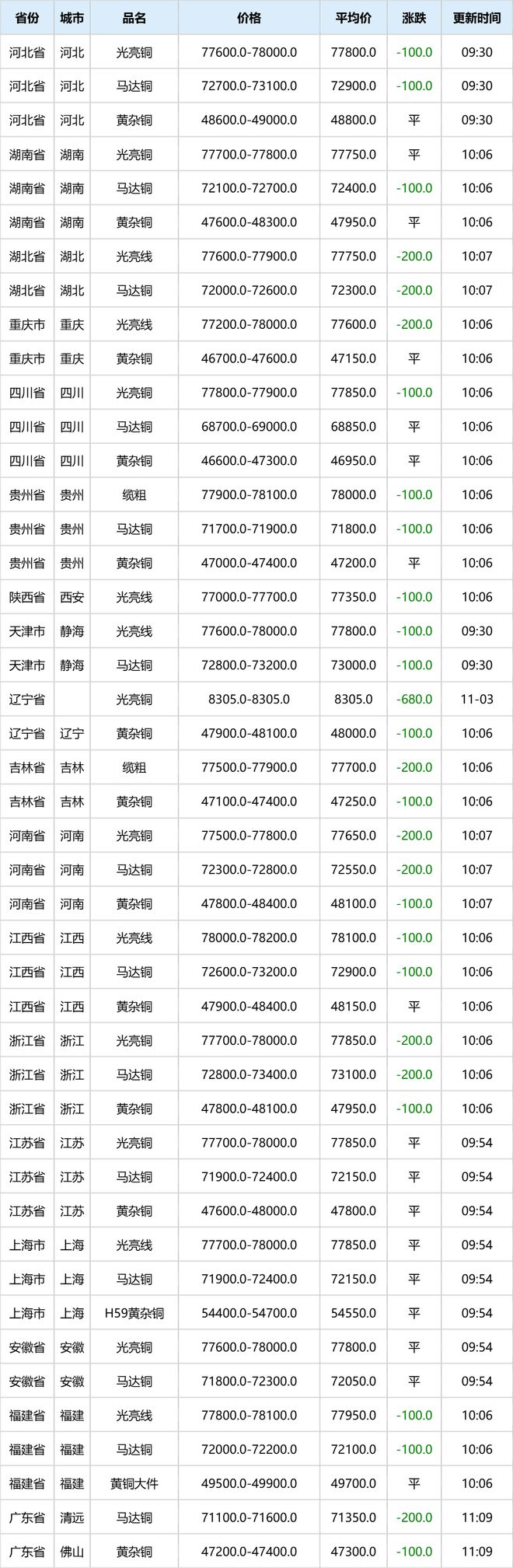 废铜日报 废铜:今日中国再生资源废铜价格为78500元/吨。望当地废铜商家密切关注价格走势,谨慎操作!