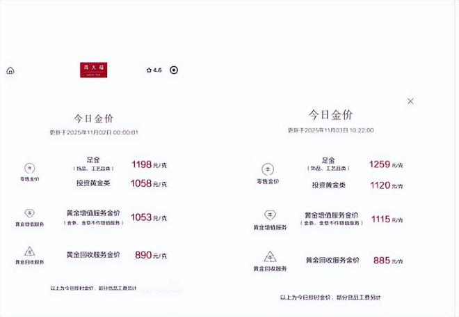 政策生效后的前两天,市场的反应还相对平稳,但到了11月3日,明显的波动开始出现。 多家银行率先做出调整,工商银行、建设银行相继宣布暂停部分黄金积存业务,包括新开账户、主动积存和提取实物等业务都暂时无法办理。 虽然银行客服解释这是出于风险管理的考虑,存量客户的赎回和销户不受影响,而且当晚工商银行就恢复了相关业务,但短暂的暂停还是给市场带来了不小的情绪影响。