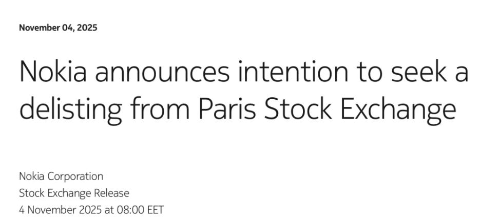每经编辑|张锦河 当地时间11月4日,诺基亚官方宣布,公司有意从巴黎泛欧证券交易所退市。