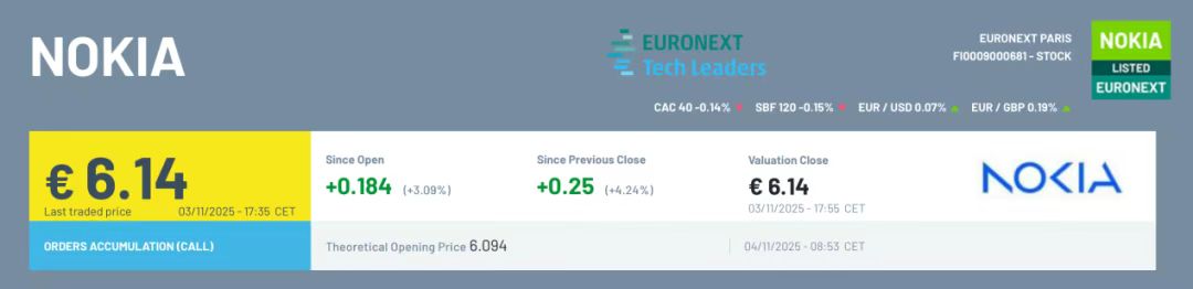 值得注意的是,此前诺基亚宣布英伟达将以10亿美元收购公司2.9%股份。 当地时间10月28日,诺基亚董事会宣布,已决定在定向增发中发行166389351股新股,以使英伟达能够对诺基亚进行10亿美元的股权投资。在满足某些惯例成交条件的前提下,英伟达将以每股6.01美元的认购价认购这些股份。此次交易将使英伟达持有诺基亚2.9%的股份。 诺基亚方面表示,将调整其5G和6G软件以便在英伟达芯片上运行,而英伟达也将探索在AI基础设施中使用诺基亚数据中心技术的方法。 英伟达CEO黄仁勋在当日的GTC DC大会上也提到了投资诺基亚一事:“今天我们宣布与诺基亚建立了合作关系,诺基亚是世界第二大电信制造商,这是一个价值3万亿美元的产业。”黄仁勋表示,全世界有数百万个基站,双方合作将能在新技术的基础上,基于加速计算和人工智能改变行业。 每日经济新闻综合公开信息 免责声明:本文内容与数据仅供参考,不构成投资建议,使用前请核实。据此操作,风险自担。 |