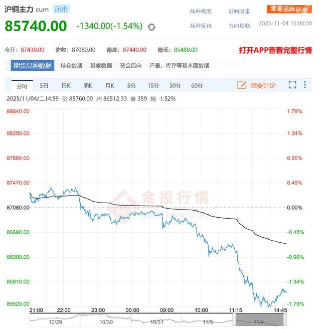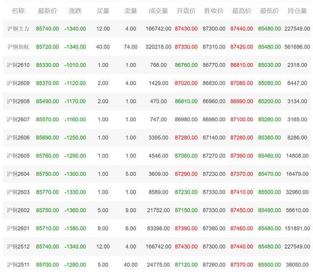 2025年11月5日沪铜主力最新价格及行情:期货高开低走领跌!产业链资产分化加剧。 期货市场:沪铜主力高开低走 内外盘联动承压 11月5日,国内沪铜主力合约(CU888)呈现高开低走态势,开盘价87430元/吨,盘中最低触及85480元/吨,最终收报85740元/吨,较前一交易日下跌1340元,跌幅1.54%。价格曲线显示,早盘高开后迅速承压,午后抛压加剧,反映市场对宏观需求预期的谨慎态度。 国际市场方面,COMEX铜合约同步下挫。其中,2505HG25K合约收报4.9670美元/磅,下跌0.1020美元(-2.01%);2503HG25H合约收报5.0050美元/磅,下跌0.0860美元(-1.69%);2501HG25F合约收报5.0340美元/磅,下跌0.1030美元(-2.01%)。内外盘铜价联动下跌,主要受美元指数走强、全球制造业PMI数据疲软及铜库存回升等因素压制,短期市场看空情绪升温。 股票市场:产业链资产分化显著 A股防御性品种逆势走强 A股铜企多数回调,少数标的显韧性。板块内权重股抛压集中:江西铜业(600362)下跌3.28%,收报38.60元,日内市值缩水超12亿元;铜陵有色(000630)下跌2.70%至5.04元,金田股份(601609)下跌2.65%至11.02元,反映上游冶炼企业受期货价格拖累显著。 但结构性机会显现,铜加工及特种材料企业逆势抗跌:铜峰电子(600237)上涨0.51%至7.90元,楚江新材(002171)微涨0.15%至12.93元,铜牛信息(300895)上涨0.91%至48.83元,显示市场对高附加值加工环节及非周期属性标的偏好提升。 港股、美股表现分化。港股江西铜业股份(00358)跌幅扩大至4.49%,收报29.820港元,较A股折价进一步扩大,或受人民币汇率波动及港股流动性收紧影响;美股南方铜业(SCCO)相对抗跌,仅下跌0.37%至138.290美元,反映欧美市场对铜价长期需求韧性的预期仍在。 市场总结:短期承压与结构性机会并存 当日沪铜及产业链资产整体呈现**“期货领跌、股票分化”**的格局。期货市场高开低走反映宏观情绪对短期价格的压制,而股票市场的分化则凸显资金对产业链不同环节的差异化定价:上游资源品受期货价格波动影响显著,下游加工及高附加值领域则因需求刚性表现相对抗跌。 展望后市,需关注国内地产政策放松力度、海外美联储加息预期变化及铜矿供应端扰动(如南美矿山劳资谈判)对价格的影响。短期市场或延续震荡调整,但中长期随着新能源产业链对铜需求的拉动,具备技术壁垒和资源优势的企业仍具配置价值。 沪铜主力最新价格: