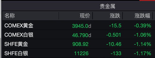 昨夜,资本市场全线飘绿:美股、黄金、原油,全线大跌。 黄金、白银大跌。国内昨夜黄金期货主力合约收盘报908.92元/克。11月5日早盘,国际黄金、白银延续跌势,COMEX黄金最新报3945美元/盎司,COMEX白银报46.790美元/盎司。 据CME“美联储观察”:美联储12月降息25个基点的概率为70.1%。美联储到明年1月累计降息25个基点的概率为55.8%。