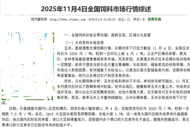 22 现代畜牧网2025-11-4 2025年11月4日全国饲料市场行情综述