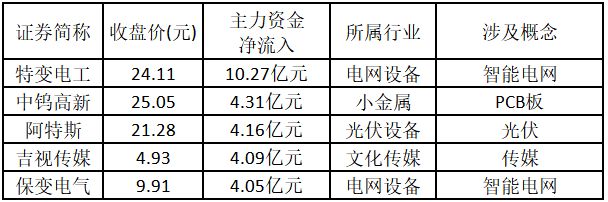 (注:创出近一年新高的涨停股,说明该股走出重要突破行情,值得重点关注。) 从主力资金来看,今日涨停板个股中,主力资金净流入金额排名前5的个股分别为特变电工、中钨高新、阿特斯、吉视传媒、保变电气。欢迎大家关注微信公众号“道达号”,其“道达涨停复盘”栏目为大家解读。