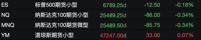 15:28更新: 标普500期货下跌0.18%,纳斯达克100指数期货下跌0.34%,道琼斯期货涨0.07%,股指期货跌多涨少,延续了周二美股的弱势表现。