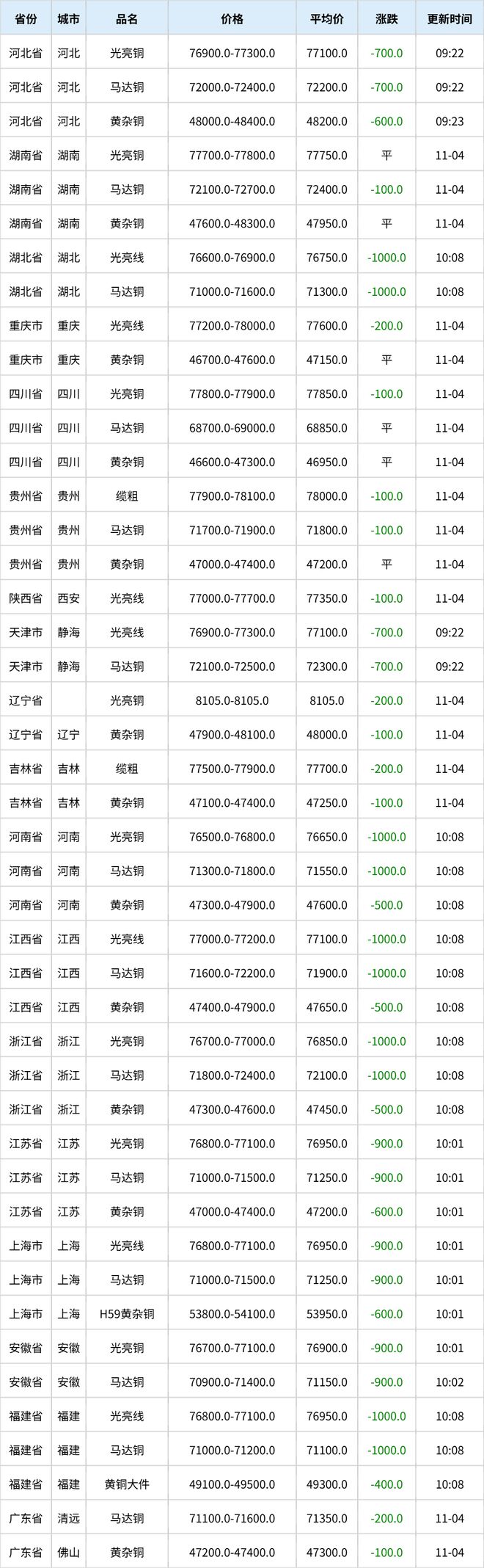 11月5日全国各地废铜价格行情一览