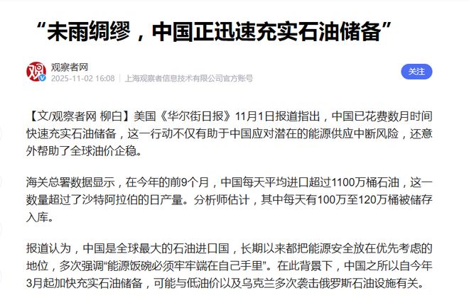 美国这操作更像“拆东墙补西墙”,盯着短期的经济情况;咱们不一样,囤油是瞄准长期的能源安全。 这两种选择一对比,更能看出咱们囤油背后的战略价值不是图一时方便,是为了以后不慌。 囤油不只是“存粮” 很多人说中国这时候大规模囤油,是为“某件大事”做准备。 其实不用猜具体是什么事,单看这动作,就能明白咱们是在为能源安全打底子,这跟每个普通人的生活都有关系。 石油就像粮食一样,是保障社会稳定和经济运行的基础。