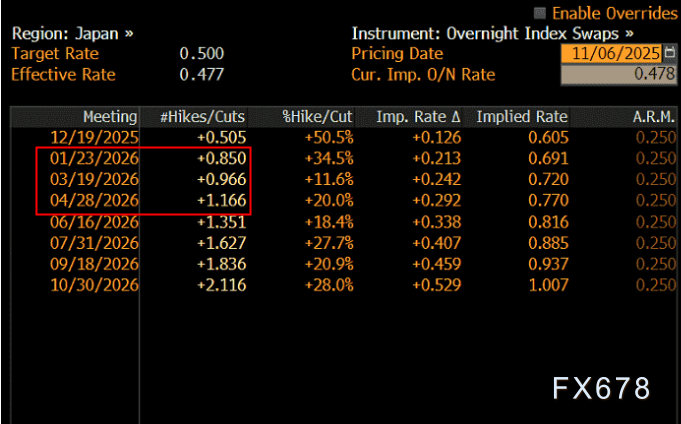 周四(11月6日)亚欧时段美元兑日元小幅震荡,目前跌0.1%交投于153.95附近,汇价周三走出了大幅探底回升走势后尾盘加速拉伸一度接近9个月前高。 ![]() 日本央行等待支持加息的数据关键牌 日本央行希望在加息前看到薪资增长动能,但今日公布的9月薪资收入水平同比下滑1.4%数据可能未能达标,凭借可等待的政治缓冲空间,12月加息绝非板上钉钉。 9月日本实际工资连续第九个月同比下滑,植田和男行期明确表示,希望在2026年春季薪资谈判初期看到明确增长动能,这一表态表明日本央行并不急于行动,暗示需等到明年一季度,央行才能做出确定性评估。 植田的谨慎立场具备合理性——过去两年工会达成的年度大幅加薪协议,尚未在更广泛的经济领域形成传导效应。 通胀环境下,日本薪资持续走弱,令市场质疑日本央行能否催生可持续的需求驱动型通胀压力。 植田和男行长即将发表的讲话或成关键变量,尤其是在上月东京CPI意外上行之后。不过,鉴于政界领导人呼吁谨慎施策,且薪资增长乏力,即便通胀持续偏离目标,日本央行也暂无迫切加息压力。 不过,日本央行上周发布特殊公告,宣布植田和男将于12月1日发表讲话,而该时间点距下一份东京CPI报告仅数日之隔,这一安排值得重点关注,同时利率期货显示明年1-4月份日本央行加息的概率将快速上行。 ![]() 日本实际工资再度下滑 9月日本实际工资再度下滑,连续第九个月同比下降,核心因通胀增速持续跑赢薪资涨幅。 尽管名义现金收入同比增长1.9%,但经通胀调整后的实际工资下滑1.4%,凸显家庭购买力承压态势。 消费作为日本经济的核心支柱,实际收入的持续缩水仍是日本央行实现需求驱动型通胀的主要掣肘。 这一时间窗口或为央行提供操作空间,可借此为12月潜在政策调整预热市场,尤其是在上次东京CPI报告中,核心与整体通胀数据均出现大幅超预期上行之后。 从当前市场定价看,互换市场隐含日本央行12月19日会议加息25个基点的概率为50%,实际将结果视为胜负各半的博弈。 到明年3月春季薪资谈判全面推进时,市场已基本完全消化一次完整加息的预期。 汇市干预风险依然可控 尽管植田的讲话将是后续关键事件,但高市早苗首相本周的表态进一步强化了“日本央行政策行动压力温和”的市场认知。 财务大臣片山皋月周二重申,随着日元跌至1美元兑154.50附近的八个月以来新低,政府将以高度紧迫感密切监控汇市波动。其最新表态与上周五言论高度一致,表明东京方面的口头警告或为当前极限举措。 但高市早苗明确表示,日本在实现薪资增长支撑的可持续通胀方面仅完成半数进程,这一信号表明其不希望推动央行过早收紧政策。 这一立场与其“承袭前首相安倍晋三风格的政策鸽派”形象一致,暗示尽管通胀显著高于日本央行2%的政策目标,但她不愿冒险削弱经济增长或推动日元过度走强。 其鸽派立场使得财务大臣关于日元走势的警告可信度受限——毕竟美元兑日元向来是典型的利差驱动型交易品种。 除非获得基本面支撑——无论是日本央行转向鹰派推高本土债券收益率,还是美国国债收益率出现实质性下行——否则政府要求日本央行采取的任何汇市干预措施,都可能陷入收效甚微的境地。 技术分析: 目前美元兑日元依然守住上升通道上轨,但周二美元兑日元汇价在美元指数上涨的背景下依然下跌给市场留下了深刻影响,代表市场做空日元的热情明显下降,同时有资金开始逢低做多日元。 目前汇价依然受到通道上轨的支撑,同时持续收在下降趋势线上方,但面对美元近期可能达到阶段高点,以及随着日元加息进程的推进,美元兑日元调整风险日益加大,这里是顶部区域的可能也在增加。 ![]() 北京时间16:00,美元兑日元现报153.76/77。 |