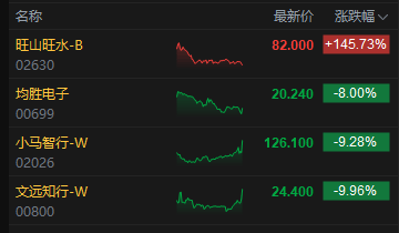 今日港股4只新股上市,旺山旺水涨超145%,小马智行、文远知行、均胜电子均下跌。