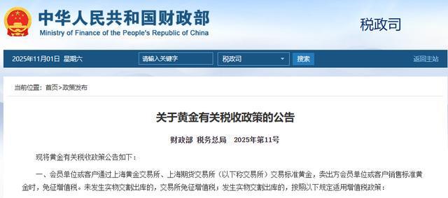 大象新闻记者 朱耒刚 史蓓蓓 王艺枫 2025年11月1日起,国家正式执行《关于黄金有关税收政策的公告》。《公告》将市场划分为两大路径:投资黄金,必须通过正规交易所进行(上海黄金交易所、上海期货交易所等);消费黄金,则要走品牌门店等合规零售渠道。