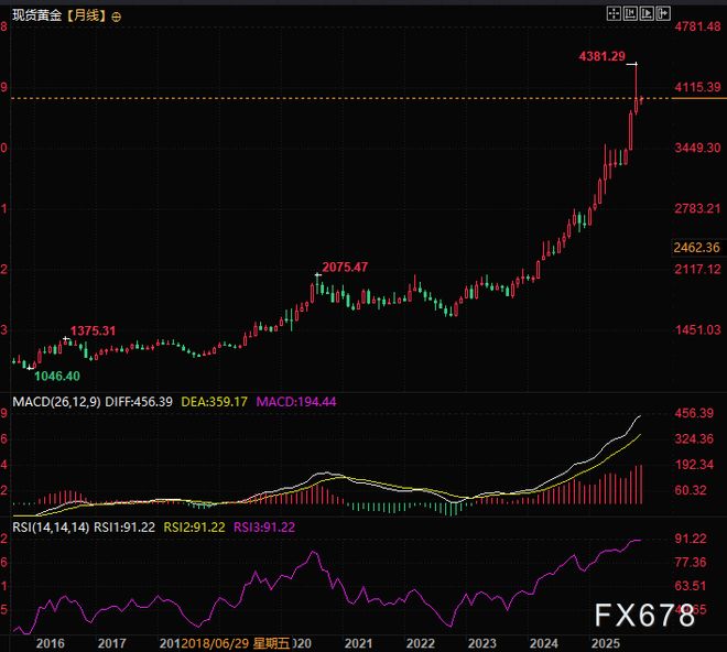 汇通财经讯——黄金年内暴涨45%创历史第三轮牛市,然而历史警示每轮辉煌都伴随深度回调与信仰考验——当下狂欢究竟是盛宴将尽还是中途换挡?债务、通胀与地缘风险共振下,金价离普通人的承受底线还有多远? 汇通财经APP讯——周四(11月6日)亚欧时段现货黄金延续昨日反弹格局,目前涨0.85%,交投于4012美元附近,目前市场上的热门避险品种中,美元、美债、黄金三驾马车齐头并进,最近美元、美债表现抢眼,今天开始了调整,黄金趁机开启反弹。 美国AI泡沫叙事,政府停摆,地缘政治等问题依然支撑避险品种的买盘,本文引用AJ贝尔投资总监近期的言论,给读者带来关于黄金从历史角度的一些观察。