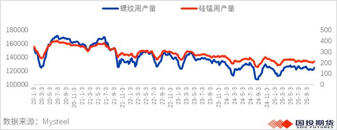 文 | 李啸尘 来源 | 国投期货研究院 编辑 | 杨兰 审核 | 浦电路交易员 自从一段短暂横跨春节的硅锰行情之后,硅锰年内值得关注的也就是“反内卷”背景下的小幅“倒V”走势,略显鸡肋。锰矿端在经历了年初的上涨后,迎来了长期缓慢的下行,不过目前底部支撑相对明显,矿山挺价意愿很强。这是否是铁合金价格的底部,我们从基本面方面继续探讨。 MANUFACTURE 01 供应过剩明显 从供应水平来看,时间进入四季度后供应水平并未下降,这和前期盘面拉升到6000一线卖出套期保值大量入场是分不开的,在此背景下,生产端的生产意愿较高,极限状态是生产出与持仓量完全匹配的货源。同时我们也能看到对价格不利的影响——供应过剩是更大范围内的共识,压制了价格反弹的空间。