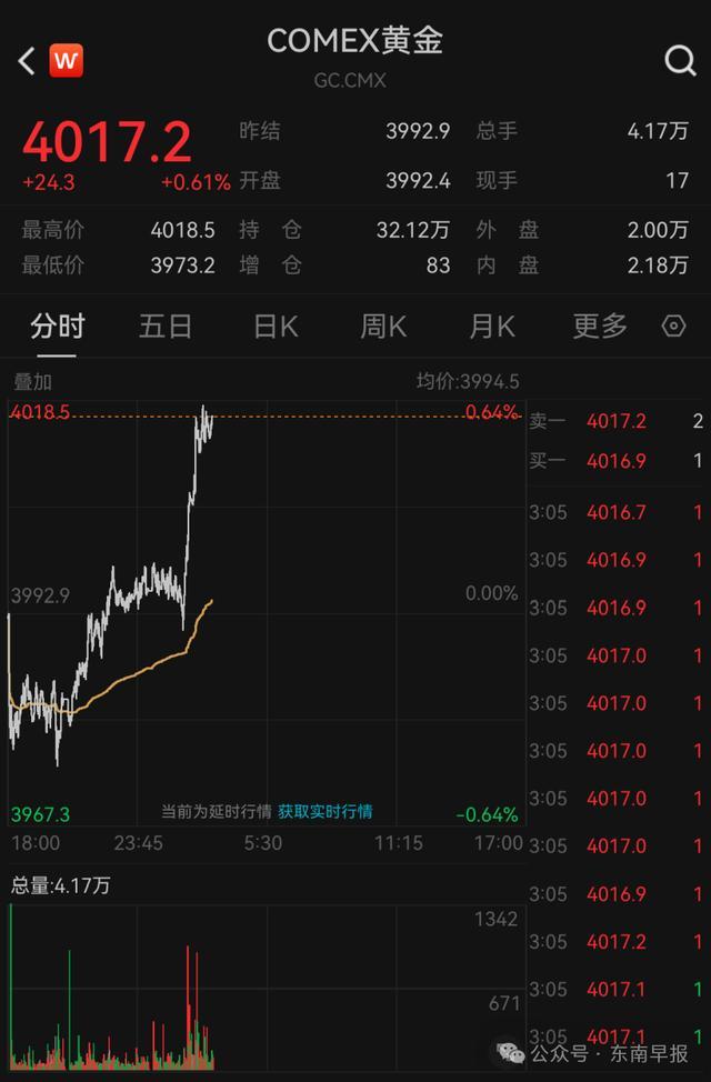 11月6日,金价再次上涨! 截至发稿,黄金现货和期货双双站上4010美元/盎司。伦敦金现报4011.46美元/盎司,涨幅为0.79%;COMEX黄金期货报4017.2美元/盎司,涨幅为0.61%。 此前,在10月下旬创下历史新高后,金价进入调整阶段,11月以来维持震荡下跌趋势。其中,11月4日、5日的收盘价均未突破4000美元/盎司。 11月6日,港股黄金股集体走高。截至收盘,紫金黄金国际、潼关黄金、灵宝黄金分别上涨8.67%、7.14%、6.19%,紫金矿业上涨4.29%,大唐黄金、赤峰黄金等涨超3%。 消息面上,当地时间11月5日,美国联邦政府“停摆”进入第36天,刷新了特朗普第一任期时的纪录。 随着美国联邦政府“停摆”天数创新高,部分投资者对美国经济基本面可能受到更多负面影响的担忧加剧。美国国会预算办公室曾表示,“停摆”若持续6周,经济损失将上升到110亿美元;若持续8周,损失将高达140亿美元。 华泰期货表示,美国10月ADP就业人数增加4.2万人,大幅超过预期的3万人,上月数据修正后为减少2.9万人。整体劳动力需求仍在放缓,薪资增长持续停滞,这为美联储12月是否继续降息增添了不确定性。 华泰期货认为,目前市场避险情绪降温,叠加美联储降息路径不确定性增强,对黄金投资的需求或略有减弱,但从中长期来看,黄金作为美元资产替代的逻辑未破,预计近期黄金价格以震荡格局为主。 中信证券指出,近期金价大幅波动,主要由中美经贸关系和降息预期驱动。展望明年,多种因素仍然很可能主导金价上涨。 来源:中国基金报 |