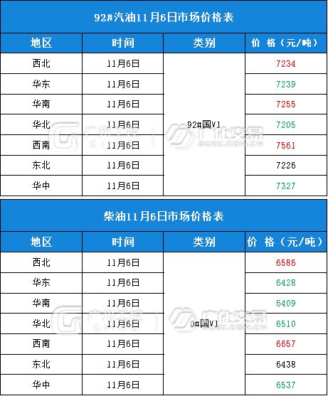 来源:广州化工交易中心 广化关注 一、国际新闻 伊拉克总理下令停止进口汽油、柴油和煤油。据央视新闻报道,当地时间11月4日,据伊拉克总理新闻办公室声明,鉴于伊拉克汽油、柴油和煤油生产已满足本国消费需求,伊拉克总理苏达尼已下令停止进口汽油、柴油和煤油。 二、国内新闻 近日,安徽省生态环境厅发布“安徽省生态环境厅关于开展工业企业废气污染防治设施专项检查的通知”,要求在合肥、芜湖、蚌埠、淮南、马鞍山、淮北、滁州、阜阳、宿州、六安、亳州、安庆、黄山等13个市,专项检查重点聚焦工业企业废气污染防治设施批而不建、建而不用或“带病”运行,自动监控设备不正常运行,直排、偷排、旁路排放或稀释排放,以及无证排污、弄虚作假、逃避监管等违法违规问题。 油品类报价(11月6日)