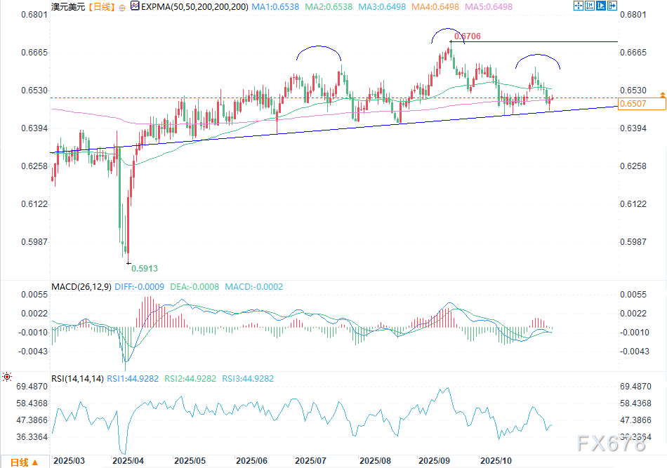 周四(11月6日)欧盘时段,美国最高法院就特朗普关税政策的相关争议听取辩论后,澳元/美元汇率略有企稳。最新ADP就业报告显示上月美国劳动力市场趋于稳定,该汇率也随之小幅上涨。 ![]() 最高法院对特朗普动用紧急权力每月通过关税征收数十亿美元的做法表示质疑,此后澳元/美元货币对维持窄幅波动。Polymarket数据显示,随着听证会推进,特朗普胜诉的概率已降至约20%。即便特朗普败诉,他仍有办法对中国等主要国家以及德国、日本等盟友征收关税。 澳元/美元对最新ADP就业报告作出反应。该报告显示,美国上月新增就业岗位超4.2万个,高于4万个的预期中位数,扭转了前一月减少3.2万个岗位的态势。过去几周,ADP报告备受关注——美国正经历史上最长政府停摆期,该报告成为当前唯一的劳动力相关数据。 美联储在近期声明中坚持认为,劳动力市场已大幅走软,这也是其在上次会议中降息的原因所在。 此外,澳元/美元还对美国最新服务业及综合PMI数据作出反应。供应管理协会(ISM)报告显示,10月服务业PMI从前期的50升至52.4;标普(S&P)发布的数据则显示,该指数从54.2升至54.8。 接下来,该货币对将受到贝丝·哈马克、约翰·威廉姆斯和迈克尔·巴尔等美联储官员讲话的影响。 即便澳大利亚9月贸易帐数据向好,澳元兑其他货币仍面临压力。今日早些时候,澳大利亚统计局公布的数据显示,9 月贸易顺差扩大至 39.38 亿澳元,超出 38.50 亿澳元的预期及前值 11.11 亿澳元。出口由负转正,增长 7.9%;进口环比增长 1.1%,低于前值 3.3% 的增幅。 技术分析 ![]() 周三澳元/美元跌至0.6463的低点后企稳。此次企稳发生在汇率触及关键支撑位之际,该支撑位与5月12日以来连接一系列低点的上升趋势线重合。 仔细观察可见,汇率已形成头肩形态——这是一种常见的看空反转形态,其颈线正是上述上升趋势线。 因此,澳元/美元最可能的走势预测为看空,初步目标位指向心理关口0.6400。若汇率突破0.6541的100日指数移动平均线,则看空前景将失效。 看空观点 卖出澳元/美元货币对,设定止盈位在0.6400。设置止损位在0.6600。时间周期:1-2天。 看多观点 买入澳元/美元货币对,设定止盈位在0.6600。设置止损位在0.6400。 |