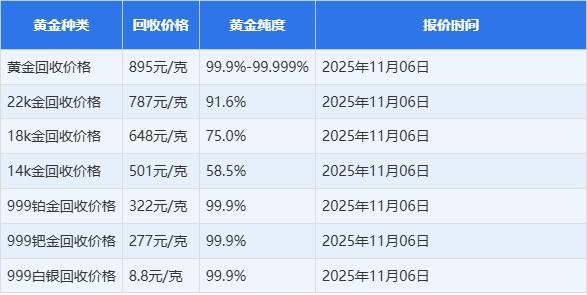 今日金价实时行情(2025年11月6日)