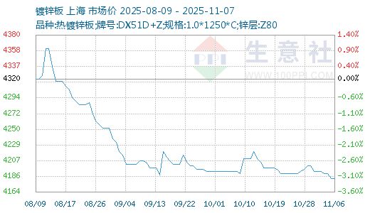 据生意社商品行情分析系统,本周彩涂板价格趋于稳定。11月3日彩涂板市场价格在6416元/吨,11月7日价格在6416元/吨,价格较上周下跌1.53%,较去年同期下跌2.787%。 二、分析评述 镀锌板:本周镀锌板的价格小幅下跌,周五(11月7日)镀锌板价格在4182元/吨,价格较上周下跌0.404%,较去年同期下跌4.67%。涂镀市场下游需求表现不温不火,市场成交偏淡。