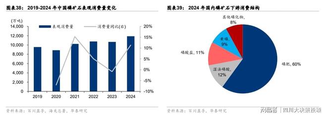 据百川盈孚,19-24 年我国磷矿表观消费量呈增长趋势,24 年消费量同比+11%至 1.2 亿吨。国内超采监管趋紧,海外磷矿开支放缓,叠加下游农肥需求仍旺盛,且新能源需求进一步拉动,磷矿石价格自 23 年来维持高位。