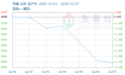 据生意社商品行情分析系统,截止11月7日,丙烯价格5890.75元/吨,较11月1日丙烯价格6058.25元/吨震荡下跌,跌幅2.61%。本周丙烯价格震荡下跌,原材料价格下跌,异辛醇成本下降,异辛醇价格下跌压力加大。 下游增塑剂DOP价格震荡上涨
