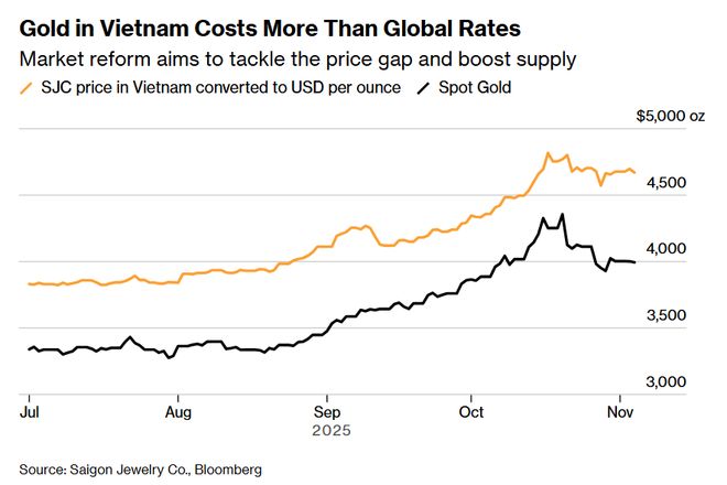 越南家庭几代人以来一直将黄金藏起来以备不时之需,如今金价上涨引发的抢购狂潮,正考验着政府对市场的掌控力。 67岁的黎氏明心(Le Thi Minh Tam,音译)数周来一直在河内四处寻觅黄金,只为在儿子即将到来的婚礼上送上这份礼物。她在商店外的长队中苦苦等待,而黄金库存总是很快售罄。 我越来越担心了,因为还没买到足够的量,;黎氏明心叹了口气说,现在已经不卖金条了,只剩金戒指,而且每位顾客限购,数量少得可怜。; 有同样困扰的不止她一人。上月,黄金价格飙升至4380美元/盎司的历史高位,这场全球牛市在越南引发了抢购狂潮。在这个国家,黄金象征着好运,人们常常将其藏在床底,以抵御经济不确定性。2025年10月,越南结束了长达13年国家对黄金原料进出口及金条生产的垄断地位——这套曾限制供应、推高价格的体系终结后,政府正试图开放市场,而此次抢购潮正是对这一举措的早期考验。 在首都河内以南约1700公里(1056英里)的胡志明市,黄金供应短缺到了极致。一些执着的消费者为了买到几枚金戒指,甚至在知名金店外通宵露营排队。 我以为早上6点来已经很早了,结果到的时候已经排起了长队,;57岁的线上餐饮店主阮金惠(Nguyen Kim Hue,音译)说,上次我来的时候什么都没买到,因为黄金早就卖光了。; 黄金早已深深融入越南文化,在婚礼中占据举足轻重的地位——至亲会赠送黄金,祝福新婚夫妇财源广进、生活富足。越南战争期间,当货币体系摇摇欲坠时,黄金曾是财富的安全保障;即便到了今天,人们对黄金的信任也往往超过银行存款。 2012年,为应对民众囤积黄金对冲通胀引发的经济不稳定,越南政府实施了对黄金的国家垄断政策:越南国家银行成为唯一的黄金进口商,西贡珠宝公司(Saigon Jewelry Co.)获得金条生产的独家许可。但这一政策扩大了本土与全球金价的差距,还催生了扰乱本币稳定的黑市。新法规撤销了这些管控,但变革预计将逐步推进:央行仍有权决定黄金进口配额。 我们得等到12月中旬,才能知道央行会发放多少黄金进口配额,;越南黄金交易商协会副主席黄忠庆(Huynh Trung Khanh,音译)说,这一数额可能远低于市场满足需求所需的量。; 据该协会数据,越南每年黄金需求量约为55吨,是东南亚最高,但越南国家银行去年仅进口了约13.5吨。此次政策改革旨在缩小本土与全球金价的差距:目前越南黄金交易溢价通常在10%-15%,政府希望将其降至2%-3%。