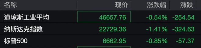 大型科技股普跌,AMD跌超2%,特斯拉、英伟达、甲骨文跌超1%。热门中概股普跌,纳斯达克中国金龙指数跌超2%。小鹏汽车跌超5%,哔哩哔哩、阿里巴巴跌超3%,京东跌超2%,理想汽车、百度跌超1%。