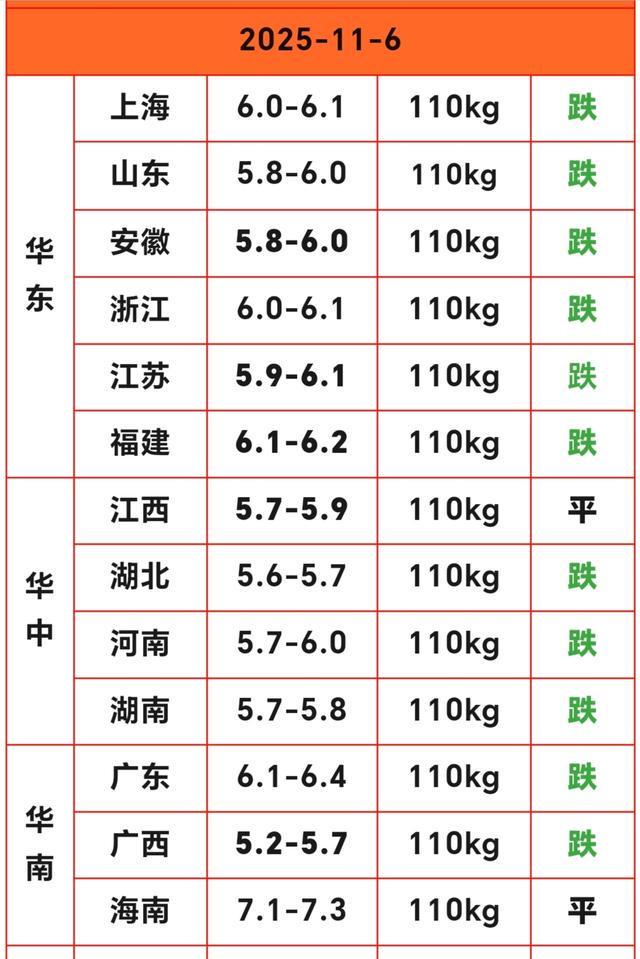 2025.11.6明日猪价显示,全国生猪市场延续了前几日的疲软态势。从数据来看,上涨地区