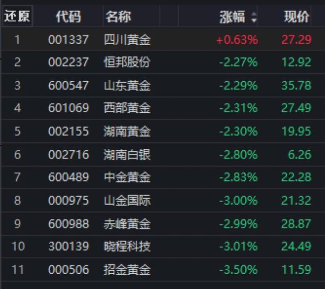 现代快报讯(记者 谢茜茜)近日,金价出现连续下跌。现代快报记者注意到,截至10月28日11时30分,国际现货黄金跌0.23%,再次跌破4000美元/盎司关口,COMEX黄金跌0.44%,跌至4002美元/盎司。国内现货黄金跌超2%,报911.2元/克。10月28日,国内各品牌金饰克价跟跌,周大福足金挂牌价调至1198元/克,较10月27日下跌25元/克;周生生足金挂牌价调至1199元/克,较27日下跌24元/克,六福珠宝足金挂牌价调至1189元/克,较27日下跌34元/克,老庙足金挂牌价调至1192元/克,较27日下跌28元/克。A股方面,截至28日收盘,贵金属板块跌幅较大,跌幅超2%。