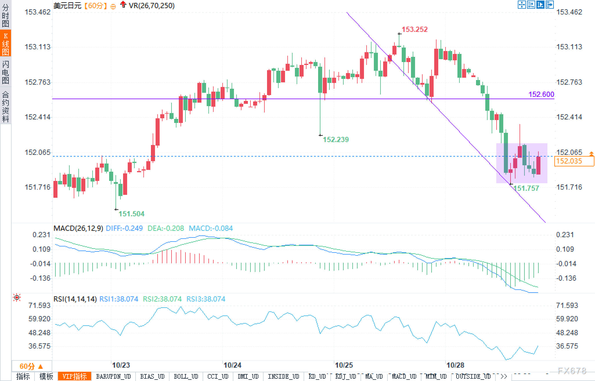 周二(10月28日),美元兑日元一度快速走低,最低逼近151.75一线,当前欧洲时段围绕152交投,日内跌幅约0.5%。汇价本轮回调触发点来自两端:一端是日元自身的阶段性走强,另一端是美元在宏观预期上的走软。 ![]() 首先,日元的买盘不是凭空出现,而是伴随着外部关系的改善信号与内部政策预期的双重驱动。 一方面,日本方面强调正在加强与美国的经济合作,并公布了一个规模达5500亿美元的海外投资规划,方向涵盖能源、电力、基础设施等实体行业。市场的读法是:这并非单纯对外布局,而是对外政策与产业政策捆绑的长期承诺,潜台词是“关系稳定,产业链迁移稳定”。这种叙事会减轻对日本出口前景的担忧,削弱“必须依靠极弱日元来保出口竞争力”的老逻辑,从而在边际上支撑日元。 与此同时,美国总统方面在公开表态中高度肯定与日本新任首相之间的关系,强调“美日友好非常牢固”。这类高规格、公开化的政治背书,往往会被外汇市场当作“地缘风险折价”下降的信号:地缘风险折价一旦下降,避险货币(传统上包括日元和瑞郎)的角色会稍微变化,资金可以更安心直接流向日元本身,而不是只在美元端避险。这种再定价在今天的盘面里表现得非常直接:美元兑日元被大幅压低到152一线附近。 第二重压力来自美元本身。美联储将在周三公布利率决定,市场主线预期仍是降息周期持续,美联储未来几次会议将继续往宽松方向走。这种“更松”的预期已经提前被计入美元价格——美元指数当前在98.70附近,较周内高位下挫约0.15%,接近近期低点。美元指数走弱,在没有突发避险因素的情况下,通常会顺势压低美元兑日元。 还要注意一点:美国国内政策噪音正在抬头。美国总统公开点名美联储主席,称其“不称职”,并暗示可能在几个月内更换,同时表示财政高层人士不愿加入美联储。这种措辞在外汇层面最直接的后果不是谁对谁错,而是政策可预见性被削弱。政策可预见性下降→美国利率路径的不确定性上升→美元的“安全溢价”被削一刀。这同样削弱美元兑日元的上行动能。 对比之下,日元这边的焦点转向日本央行。日本央行将在周四公布最新决议,市场主线仍认为本次会议大概率按兵不动,基准利率维持在0.5%。但真正影响市场定价的,不是“按兵不动”本身,而是后面那句:交易员开始押注12月日本央行存在约38%的概率会加息25个基点。这意味着外汇市场开始给日元定价一个“也许逐步回归正常化”的未来。这就是为什么,在美联储被认为要继续走松、日本央行被认为可能走紧的配对框架下,美元兑日元从153.25的高位回落到152附近并不令人意外,而是利差交易被轻度削减后的正常反应。 技术面: 从小时级别K线图来看,美元兑日元在10月后段出现一轮冲高回落:上方153.252一线是近期高点,之后沿着一条明显的下降趋势线一路下滑,趋势线连接了高位回落阶段的多根阴线低点,具有典型的下降趋势线特征。 向下的过程中,汇价一度击穿152.600一线,并快速下探到151.757的阶段低点。随后,美元兑日元并未继续出现顺势崩溃式下跌,而是在151.75—152.10附近形成了一个矩形形态的横盘整理区,也就是典型的盘整市场/箱体结构。这一箱体说明:空头在极短线已经完成了第一波“放量下跌”,但多头暂时还能在152关口附近守住阵地,双方都在等待下一轮催化(日本央行、美联储)。 ![]() 相对强弱指数RSI(14)目前在38.074附近,仍处于偏低区间。38一带并非极端超卖,但它明确告诉我们:当前美元兑日元仍在弱势区间内运行,短线反弹更多像技术性反弹,而不是趋势性反转。只有当RSI重新站回中轴上方、同时价格能重新回到152.600上方并完成回测,这种反弹才更可能被市场认定为“有效修复”而非“死猫跳”。 从价位结构看,152.600一线依旧是上方首要阻力位,这里既是此前的水平支撑,也是10月下行通道中的密集成交区域,属于典型的“支撑转阻力”。向下则需盯住151.757这一阶段低点,它目前扮演着短线支撑位/防线的角色。如果这条支撑线被向下击穿并确认,美元兑日元将面临新一轮下探,市场会开始讨论151.50甚至更低区间的可能性。 简单说,技术面目前不是反转,而是下跌后的喘息:下降趋势线仍压着价格,MACD仍为负,RSI仍偏弱,箱体区间说明市场在消化空头获利盘并等待央行信号。技术面给出的结论是:美元兑日元的主趋势仍倾向下行,除非价格能重新站稳152.600并突破下降趋势线,否则反弹只是修正,而不是新的上升趋势。 市场情绪观察:从“利差逻辑”到“央行博弈”的心态切换 当前的市场情绪正在从“单边利差交易”切换到“央行博弈+政策噪音”的模式。过去,美元兑日元的大部分上涨逻辑是:美联储维持高利率,日本央行极度宽松,利差巨大→ carry交易(套息交易)偏向长期做多美元兑日元。这套逻辑仍然存在,但正在被两件事稀释。 第一,市场已开始认真给日本央行的后续加息概率定价:12月加25个基点的隐含概率被拉到约38%。这对套息交易来说意味着潜在成本上升,carry的吸引力不再是“闭眼长期持有、坐收利差”这么简单;这个心理变化本身,就是情绪层面的拐点。 第二,美联储这边的路径正在被政治噪音化。政策路径一旦被认为受内政博弈影响,而不是单纯由通胀和就业数据驱动,美联储的权威性、独立性和前瞻指引都会被市场打折。美联储一旦被打折,美元作为全球流动性的锚也会