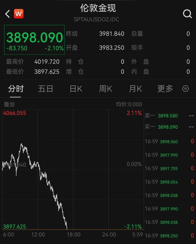 10月28日,现货黄金再度走低,跌破3900美元/盎司,日内跌超2%,两日来连续失守4000、3900美元两道整数关口。
