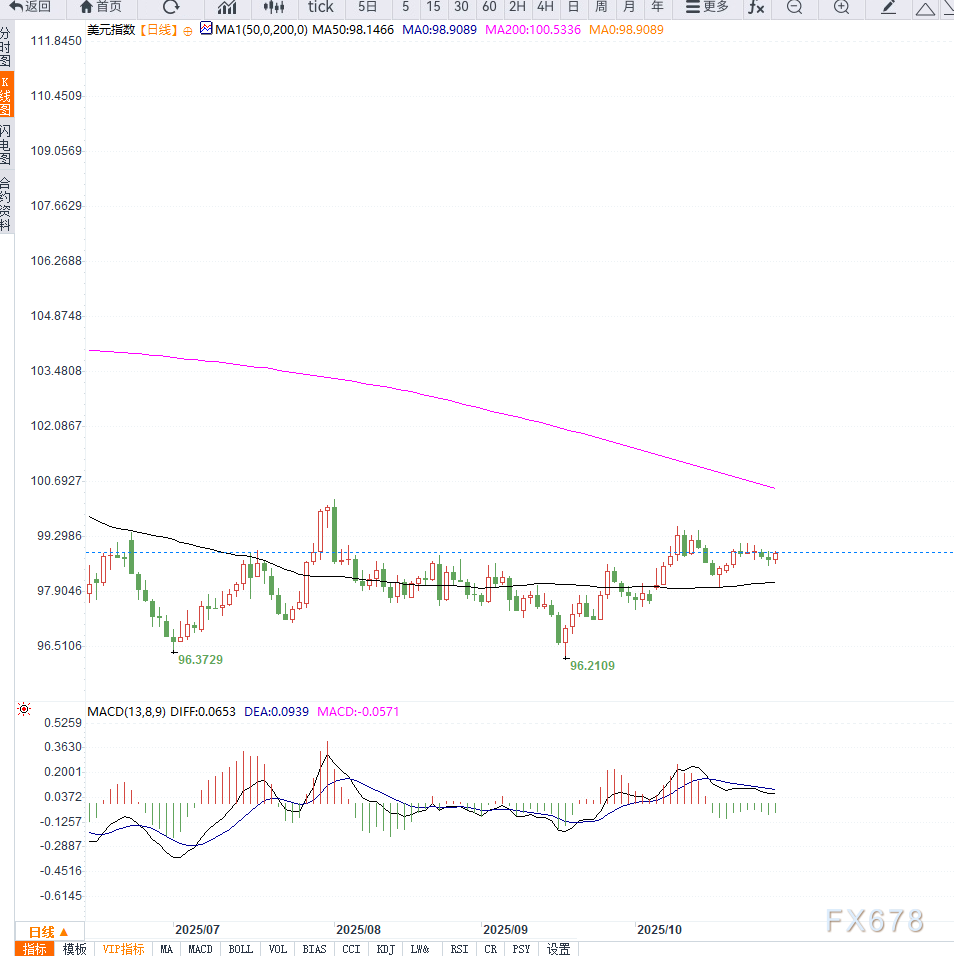 美元指数(DXY)周三亚洲交易时段反弹至98.90附近,结束了此前连续两日的跌势。投资者在美联储利率决议公布前调整仓位,短线推动美元企稳。 ![]() 最新的美联储调查结果亦显示,美联储可能在接下来的两次会议中继续降息,以应对美国制造业活动放缓和通胀回落风险。 市场分析人士指出,鲍威尔(Jerome Powell)在会后新闻发布会上的言论将成为关键。若其语气偏鸽,暗示年内持续宽松,可能导致美元短线承压; 反之,如强调经济基本面仍具韧性,则美元指数有望维持反弹势头。 与此同时,美国总统特朗普在周三于韩国表示,美联储将不会加息,并预测美国经济将在下季度实现4%的GDP增长。 他强调,美国制造业正出现“强劲复苏”,并预计到其任期结束时,将有约21至22万亿美元的投资流入美国。 然而,市场仍需警惕政治层面的不确定性。美国政府停摆已进入第五周,导致包括就业与通胀在内的关键经济数据推迟发布,使货币政策前景更具不确定性。 从日线图形看,美元指数在98.50附近获得明显支撑,并于MA20均线附近反弹。若价格能突破99.00整数关口,将打开进一步上行空间,目标指向99.45与99.80区域。 反之,如跌破98.40,将可能测试前期低点98.00与97.75区域。MACD显示多头动能逐渐增强,RSI回升至中性区域,短线倾向温和看涨。 ![]() 当前美元的反弹更多体现出市场在美联储决议前的技术性修复与情绪回稳。若鲍威尔在会后讲话暗示年内进一步降息,美元指数可能重新承压并考验98.00支撑。 但若贸易谈判取得实质进展、美国经济数据恢复正常发布,则美元中期前景仍具支撑。需密切关注鲍威尔的措辞变化及其对市场预期的引导。 |
