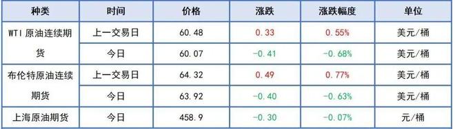 价格综述及影响因素: 上一交易日WTI原油连续结算价上涨0.33美元/桶,涨幅0.55%;布伦特原油连续结算价上涨0.49美元/桶,涨幅0.77%,截止北京时间下午三点, WTI原油下跌0.68%,布伦特原油下跌0.63%,今日国内上海原油下跌0.07%。 中美领导人韩国釜山会晤,市场认为贸易争端或有所缓和。(利好) 美国EIA(美能源信息署)最新数据,截止2025年10月24日当周,美国商业原油库存量4.15966亿桶,比前一周下降685.8万桶;美国汽油库存总量2.10738亿桶,比前一周下降594.1万桶;馏分油库存量为1.12189亿桶,比前一周下降336.2万桶。(利好) 原油后市展望: 隔夜国际原油止跌小幅反弹,主要影响因素为中美经贸谈判使得贸易前景有所改善,周末召开的APEC会议进展顺利或给予原油价格支撑,与此同时美联储如期降息25个基点,叠加美国EIA数据显示美商业原油库存及成品油库存双双下降,使得原油价格止跌反弹。但需要关注周末OPEC+会议商议12月增产计划,预计短期国际原油价格小幅反弹,中长期供需端依然承压。 4.汽柴油市场综述展望: 今日汽油价格窄幅下跌,汽油主营单位东北、西南、华南地区暂稳挺价,其他地区窄幅下跌,地炼山东炼厂下调报价,西北地炼持稳为主; 今日柴油价格止跌企稳,柴油主营单位西北地区小幅下跌,其他地区偏稳波动,地炼山东炼厂零星探涨、西北地炼暂稳挺价。 今日山东地炼出货水平汽柴油均提升,汽油产销率为84%、较昨日提升3%;柴油产销率为111%、较昨日提升23%,隔夜国际原油止跌小幅反弹,提振市场购销情绪,中下游在买涨入市补货增加,汽油出货不佳,柴油冬季负号油备货增加,月底主营单位及地炼销售情况不一,市场仍存暗惠促销去库情况。预计下一交易日国内汽油窄幅下跌、柴油价格稳中探涨。 【免责声明】以上内容仅供参考,化盟网不对所收集的数据、信息的真实性、准确性、完整性和所持的观点承担任何法律责任。 |