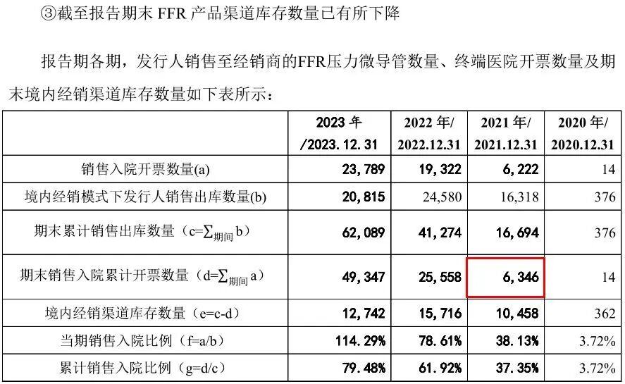 (截图来自科创板IPO第一版招股书申报稿) 上述数据的收集均提到了第三方市场调研机构弗若斯特沙利文,根据其官网介绍,弗若斯特沙利文是一家全球增长咨询公司,1961年成立于华尔街,1998年进入中国。公司利用数据库和专家库、运用专业知识和咨询工具,帮助客户加速成长步伐,助力客户在行业内取得增长、科创、领先的标杆地位,实现融资及上市等资本运作目标。近10年来,弗若斯特沙利文蝉联中国企业赴香港及境外上市行业研究顾问市场份额领导地位;且近年来,弗若斯特沙利文报告也被广泛引用于业内A股、科创板等上市公司的招股文件、一级和二级市场研究报告及其他资本市场公示文件中。 去年小杨哥带货美诚月饼翻车的事件闹得满城风雨,其中由弗若斯特沙利文颁发的“市场地位确认证书”就受到了广泛质疑。 核心产品销售价格异常,部分收入确认节点存疑 从此次IPO的申报材料来看,北芯生命针对FFR系统产品的信披存在多处疑点,其一是关于FFR主机的销售价格问题。 根据第一版招股书申报稿,2020年北芯生命的主营业务收入为158.76万元,其中FFR主机的收入金额为18.90万元,当期销售数量为14台。根据第一版首轮问询回复,2020年,北芯生命向大区经销商江苏大群医疗器械有限公司销售FFR主机10台,单价为1.86万元/台,合计金额为18.58万元。由此来看,那剩余4台FFR主机的合计销售金额仅为0.32万元。 但是从报告期内FFR主机销售情况来看,北芯生命销售给上海依舟贸易有限公司、广东海王医药集团有限公司等多个大区经销商的单价是没有差异的,均为1.86万元/台。 根据北芯生命的销售策略,其为促进产品的学术推广及宣传,提供限量的设备免费供终端客户试用。当样机转销售时,样机由固定资产转入存货,并确认收入及结转成本。但2020年,北芯生命也不存在FFR主机试用转销售的情况。这4台FFR主机的销售为何出现销售价格异常?销售对象又是谁呢? 其二,北芯生命对部分客户销售产品的确认收入节点异于常规。 根据招股书,在境内经销模式下,北芯生命在经销商支付货款后安排发货,并于经销商签收时点确认收入。其中大区经销商隶属于境内销售模式。 据首轮问询回复,大区经销商安顺利和(北京)医疗科技有限公司(下称“安顺利和”)成立于2020年6月,在公司成立当年,北芯生命未向其销售FFR压力微导管。但安顺利和2020年FFR压力微导管的进销存数据显示,入库数量为30根,出库20根,存货10根。 2021年,北芯生命向安顺利和销售FFR压力微导管2,143根。同期,安顺利和入库量为2,974根,比采购数量多出831根。也就说,安顺利和先收到货、确认入库,而北芯生命则在当年未对这831根FFR压力微导管确认收入。 再对照2022年和2023年1-6月,安顺利和确认的FFR压力微导管入库数量与北芯生命披露的销售数量则一一对应,分别为是731根、100根。 安顺利和的实控人是仲必文,仲必文曾于2021年10月前担任北芯生命的另一家大区经销商聚赢惠康(上海)科技服务有限公司(下称“聚赢惠康”)北京分公司的负责人。而且,2021年安顺利和还自聚赢惠康承接北芯生命华北大区的经销业务。但安顺利和与聚赢惠康不属于同一控制下的企业,且无关联关系。 从聚赢惠康的进销存数据来看,2020年,FFR压力微导管的入库数量和出库数量均为30根,北芯生命对其销售数量也为30根。2021年,聚赢惠康采购产品的入库数量和出库数量均为831根,北芯生命对其销售数量也为831根。 此外,北芯生命还存在一个明显的信披错误。 因更新年报财务数据,北芯生命公示了第二版首轮问询回复。该文件中,北芯生命将FFR压力微导管2021年和2022年的期末销售入院累计开票数量从原来的5,931根、23,914根调整为6,236根、25,558根。而第二版首轮问询回复的其他部分,2021年期末销售入院累计开票数量又出现第二个数据版本6,346根。