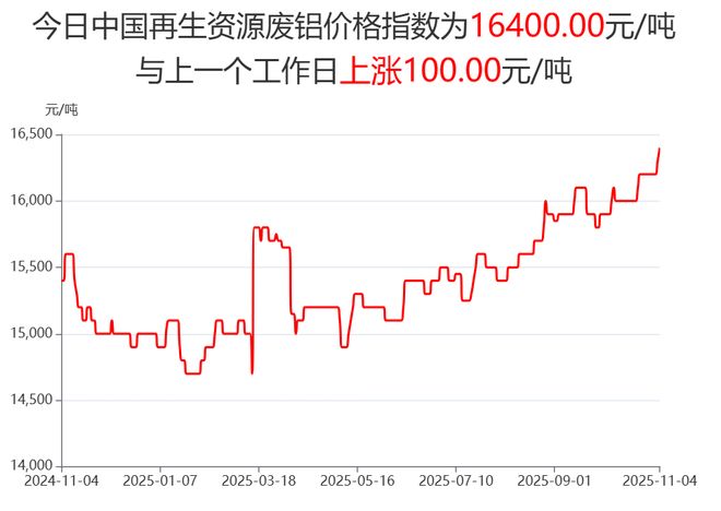 废铝日报 废铝:今日中国再生资源废铝价格为16400元/吨。望当地废铝商家密切关注价格走势,谨慎操作!