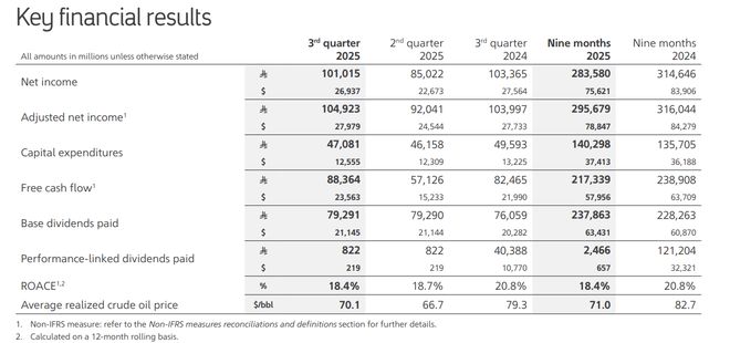 该公司第三季度总收入为 4181.6 亿沙特里亚尔(1110亿美元),超过分析师预期的4112.6亿沙特里亚尔。 该公司还宣布,第三季度的自由现金流为235.6亿美元,不仅较上季度的152.3亿美元大幅提高,而且还高于去年同期的220亿美元。董事会还宣布,2025年基本股息为211亿美元,业绩挂钩股息为2亿美元,将于第四季度支付。 阿美公司总裁兼首席执行官Amin H. Nasser在声明中表示: “我们第三季度的强劲表现再次证明了阿美公司适应新市场现实的能力。我们以最小的成本增加了产量,并可靠地为客户提供所需的石油、天然气和相关产品。” 油价下滑趋势有望扭转? 由于国际油价走弱,沙特阿美今年一直面临着利润下滑的困境——今年前九个月,国际油价累计下跌超过6%,这也给全球石油企业带来了盈利压力。 而近期,国际油价的跌势加剧,这导致今年年初至今,美国WTI原油现货价格的累计跌幅已经超过16%。同样,全球基准布伦特原油价格也下跌超过12%。 不过,周末OPEC+决定明年第一季度计划暂停增产的消息,可能给沙特阿美等油企带来了盈利增长的希望。 周日,OPEC+召开会议,决定从12月开始再增加13.7万桶石油产量。然而,该组织表示,“由于季节性因素”,计划在明年1月、2月和3月将暂停增产。 这一消息无疑为动荡的全球原油市场注入了一针稳定剂,也为油价的未来走势增加了更多上行动力。受这一消息影响,国际油价周一一度走高,不过目前仍未摆脱过去四年低位。 |