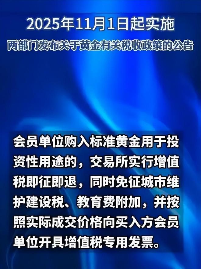 4 就在这个风云变幻的关键时刻,中国方面释放出一条重磅政策信号:11月1日,财政部与国家税务总局联合发布《关于继续实施黄金增值税优惠政策的公告》。消息一出,立刻引发广泛解读。不少人第一反应是质疑——这是否意味着监管层有意压制黄金价格?更有甚者展开联想,猜测这是中美之间某种隐秘协调的结果,意在联手调控全球贵金属市场走向。 5