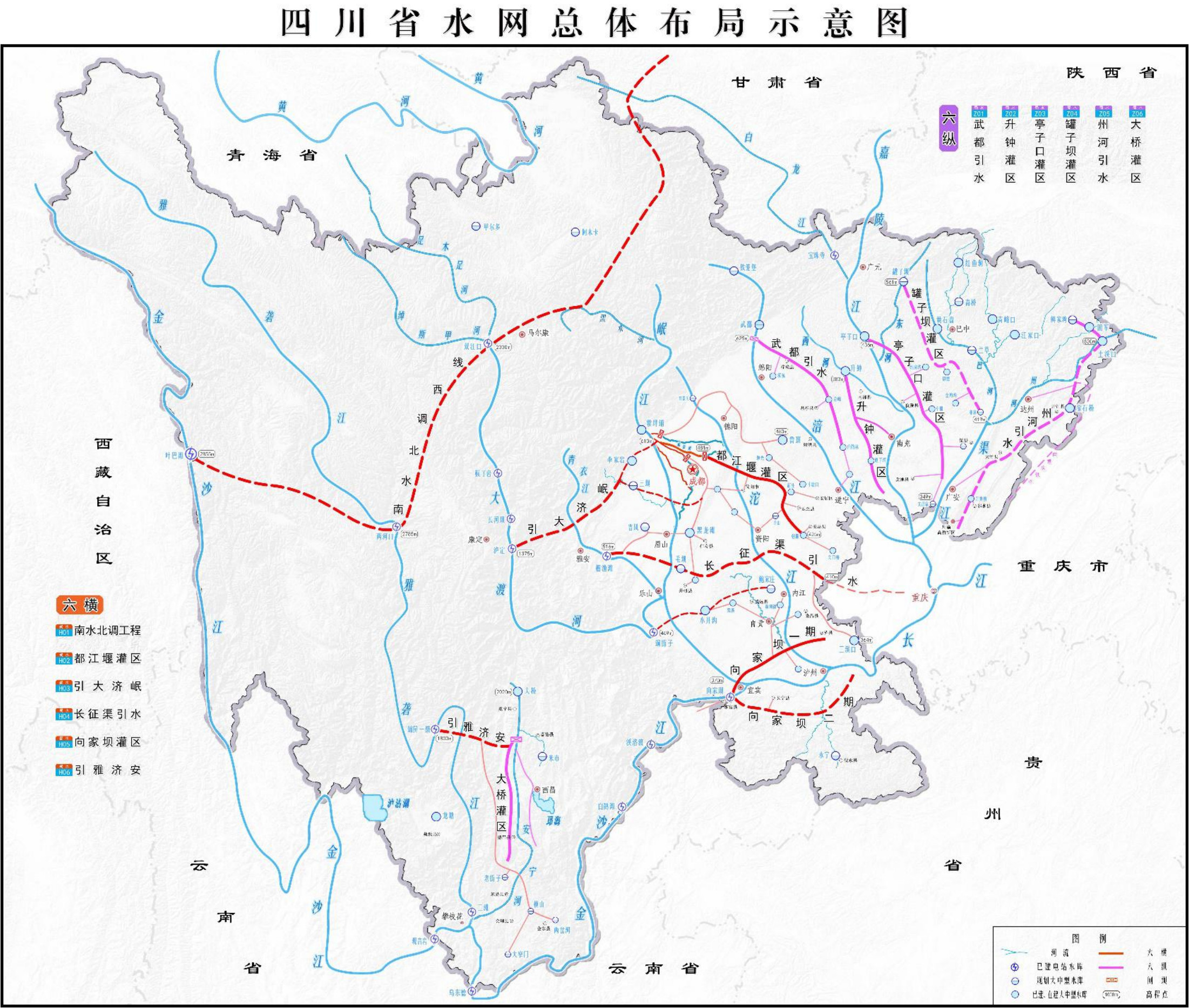 图片来源:《四川省现代水网建设规划》 六横是都江堰、引大济岷、长征渠、向家坝、引雅济安、南水北调西线工程,六纵是武都、升钟、大桥、亭子口、罐子坝、川渝东北一体化水资源配置工程,力争到2030年骨干水网总体架构基本完成。 引大济岷工程就是其中重要“一横”,也是构建四川现代化水网体系的关键性骨干工程。在四川水发设计公司副总经理刘长升看来,引大济岷工程将优化岷江水资源配置,提高大渡河-岷江水资源统筹调配能力,实现都江堰供水区水资源南北弹性调配、东西统筹互济的配置格局。 事实上,在引大济岷之外,四川还在大力推动长征渠引水、毗河供水二期、向家坝灌区二期、亭子口灌区二期、罐子坝水库及灌区、川渝东北一体化水资源配置、引雅济安等重大水网工程,推动水网功能协同融合。 今年7月,四川省水利厅在答复《加快长征渠建设保障成渝地区双城经济圈水资源安全》的提案时透露,已将该工程上报国家部委,积极争取纳入国家“十五五”规划。 与此同时,向家坝灌区二期工程已经纳入国家“两重”建设实施方案,目前正在开展可研阶段工作,将争取2026年开工建设。 这些重大工程的加快推进,也将进一步重塑四川现代水网,进一步筑牢区域发展的安全底线。 新的趋势水是生态环境的控制性要素,决定着经济社会发展空间。 作为西部经济大省,四川坚持把工业用水作为水资源管理“增长极”,推动“四水四定”(以水定城、以水定地、以水定人、以水定产)率先在工业领域和产业园区刚性落地,水资源成为影响全省工业上马和产业园区规划建设的刚性因素。