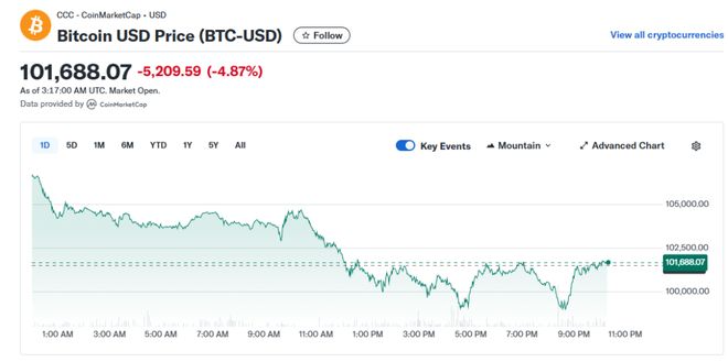 比特币跌破99000美元后有所反弹,截至发稿报101688美元。